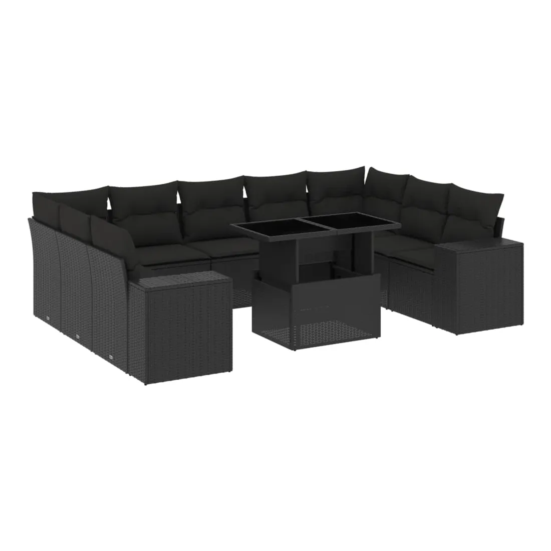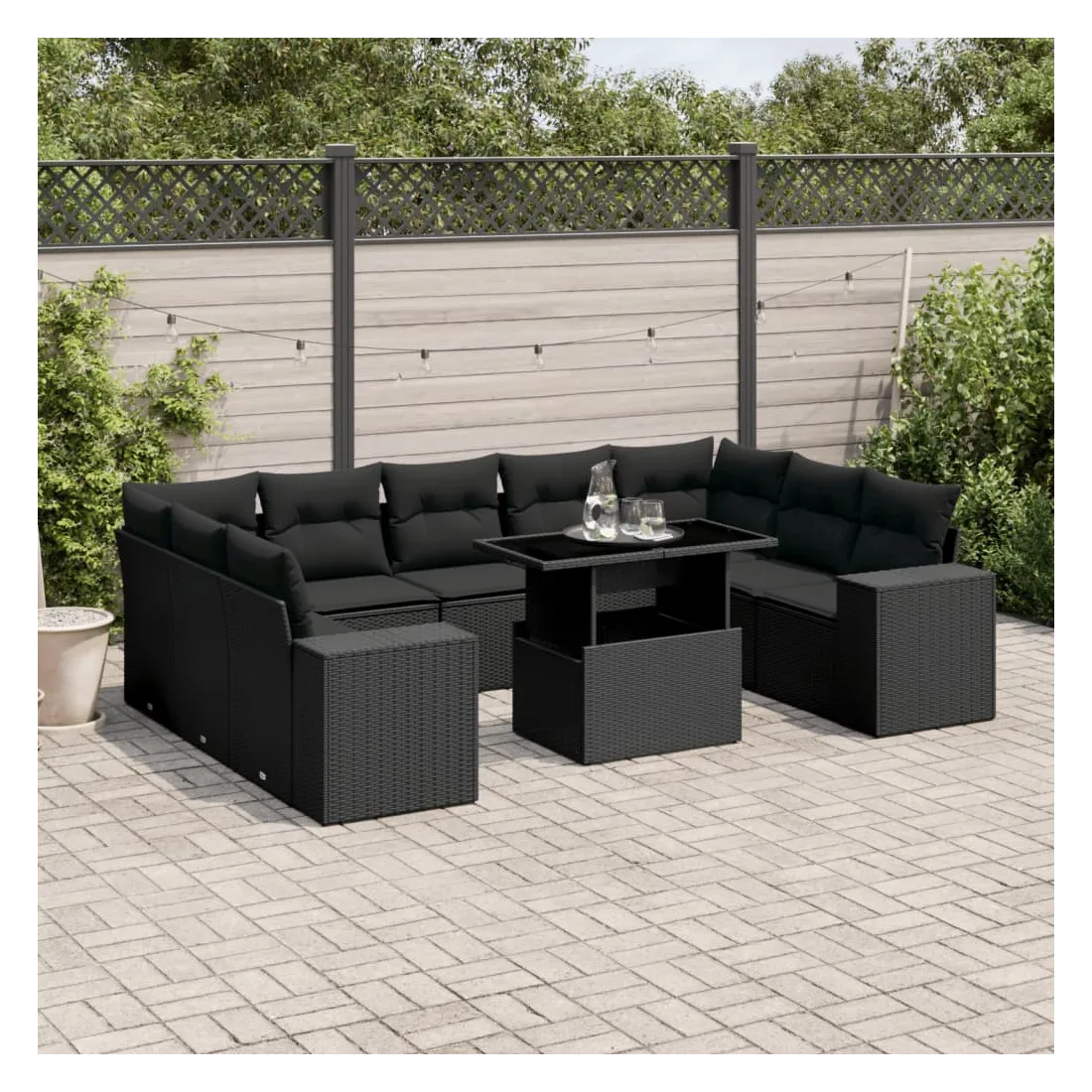 Salon de jardin 10 pcs avec coussins noir résine tressée