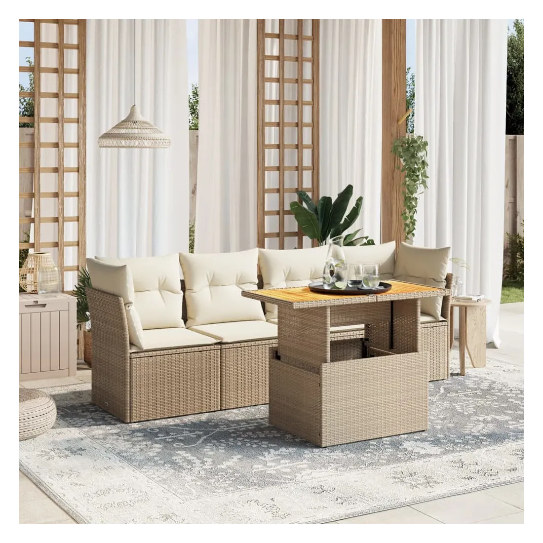 Cet ensemble de canapés de jardin est le complément parfait de votre arrière-cour, terrasse ou patio, offrant un espace confortable et accueillant pour discuter avec la famille et les amis ou simplement se détendre et profiter de l'extérieur. Matériau durable : la résine tressée, également connue sous le nom de poly rotin, est un matériau synthétique solide et nécessitant peu d'entretien qui ressemble au rotin naturel. Il est léger, facile à nettoyer et couramment utilisé pour les meubles d'extérieur en raison de sa durabilité et de ses propriétés de résistance aux intempéries.Dessus de table réglable : le dessus de table peut être soulevé pour rendre la table plus haute, ce qui transforme la table d'extérieur d'une table basse à une table de salle à manger. Elle est parfaite pour recevoir des invités ou prendre des repas à l'extérieur.Expérience d'assise confortable : ce mobilier d'extérieur, doté de coussins épais, offre une expérience d'assise confortable.Housse amovible et lavable : ces coussins de siège sont dotés de housses amovibles pour un lavage et un entretien faciles.Conception modulaire : cet ensemble de meubles d'extérieur a une conception modulaire, ce qui le rend complètement flexible et facile à déplacer, afin que vous puissiez créer un agencement de meubles d'extérieur personnalisé. Bon à savoir :Pour que vos meubles d'extérieur restent beaux, nous vous recommandons de les protéger avec une housse imperméable.