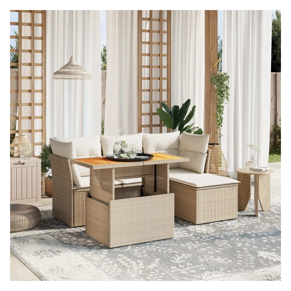 Cet ensemble de canapés de jardin est le complément parfait de votre arrière-cour, terrasse ou patio, offrant un espace confortable et accueillant pour discuter avec la famille et les amis ou simplement se détendre et profiter de l'extérieur. Matériau durable : la résine tressée, également connue sous le nom de poly rotin, est un matériau synthétique solide et nécessitant peu d'entretien qui ressemble au rotin naturel. Il est léger, facile à nettoyer et couramment utilisé pour les meubles d'extérieur en raison de sa durabilité et de ses propriétés de résistance aux intempéries.Dessus de table réglable : le dessus de table peut être soulevé pour rendre la table plus haute, ce qui transforme la table d'extérieur d'une table basse à une table de salle à manger. Elle est parfaite pour recevoir des invités ou prendre des repas à l'extérieur.Expérience d'assise confortable : ce mobilier d'extérieur, doté de coussins épais, offre une expérience d'assise confortable.Housse amovible et lavable : ces coussins de siège sont dotés de housses amovibles pour un lavage et un entretien faciles.Conception modulaire : cet ensemble de meubles d'extérieur a une conception modulaire, ce qui le rend complètement flexible et facile à déplacer, afin que vous puissiez créer un agencement de meubles d'extérieur personnalisé. Bon à savoir :Pour que vos meubles d'extérieur restent beaux, nous vous recommandons de les protéger avec une housse imperméable.