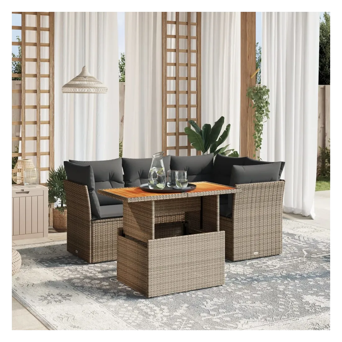- Matériau : résine tressée, acier enduit de poudre, bois d'acacia massif avec finition à l'huile