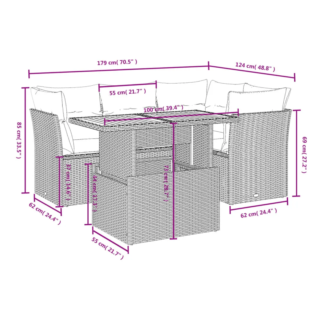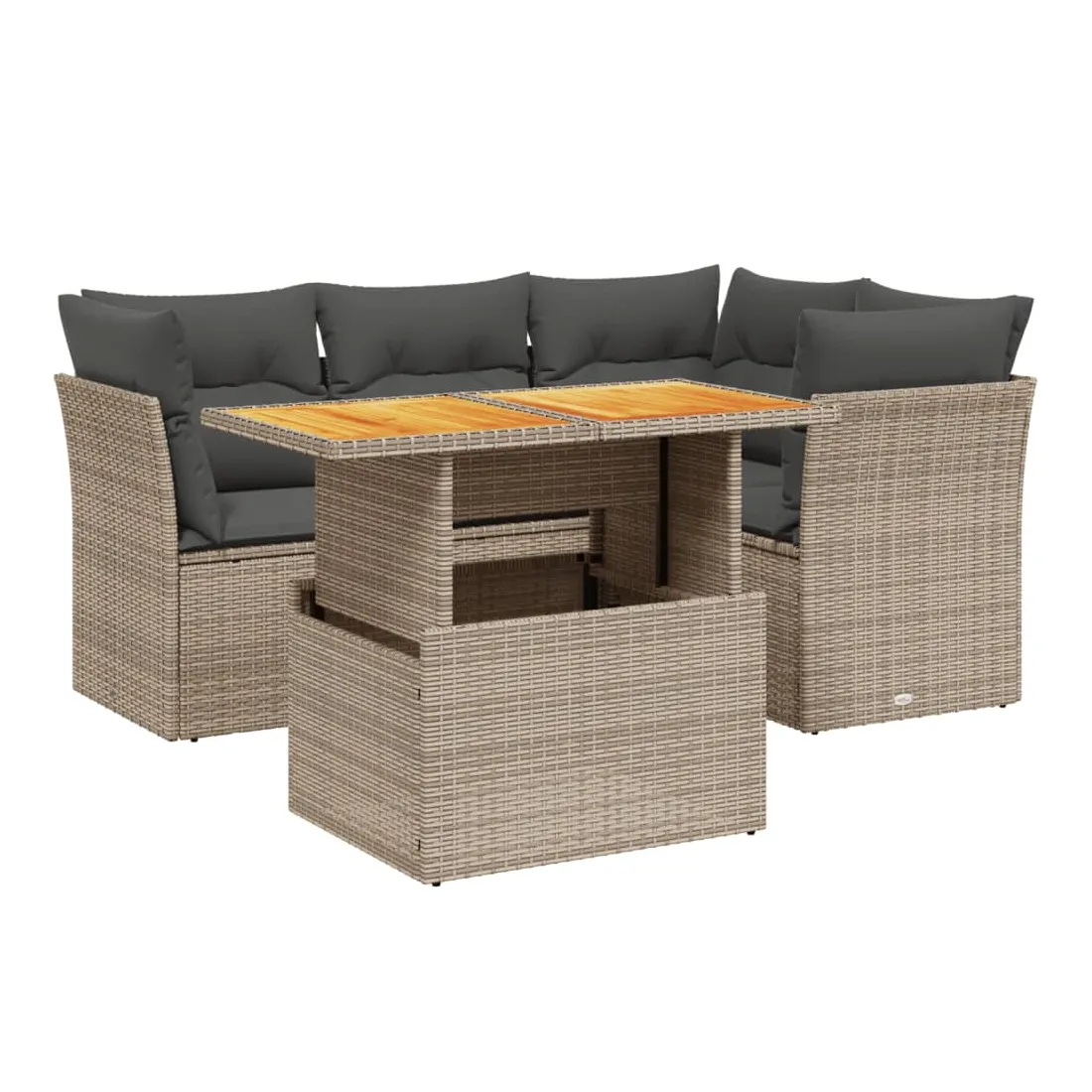 Cet ensemble de canapés de jardin est le complément parfait de votre arrière-cour, terrasse ou patio, offrant un espace confortable et accueillant pour discuter avec la famille et les amis ou simplement se détendre et profiter de l'extérieur. Matériau durable : la résine tressée, également connue sous le nom de poly rotin, est un matériau synthétique solide et nécessitant peu d'entretien qui ressemble au rotin naturel. Il est léger, facile à nettoyer et couramment utilisé pour les meubles d'extérieur en raison de sa durabilité et de ses propriétés de résistance aux intempéries.Dessus de table réglable : le dessus de table peut être soulevé pour rendre la table plus haute, ce qui transforme la table d'extérieur d'une table basse à une table de salle à manger. Elle est parfaite pour recevoir des invités ou prendre des repas à l'extérieur.Expérience d'assise confortable : ce mobilier d'extérieur, doté de coussins épais, offre une expérience d'assise confortable.Housse amovible et lavable : ces coussins de siège sont dotés de housses amovibles pour un lavage et un entretien faciles.Conception modulaire : cet ensemble de meubles d'extérieur a une conception modulaire, ce qui le rend complètement flexible et facile à déplacer, afin que vous puissiez créer un agencement de meubles d'extérieur personnalisé. Bon à savoir :Pour que vos meubles d'extérieur restent beaux, nous vous recommandons de les protéger avec une housse imperméable.