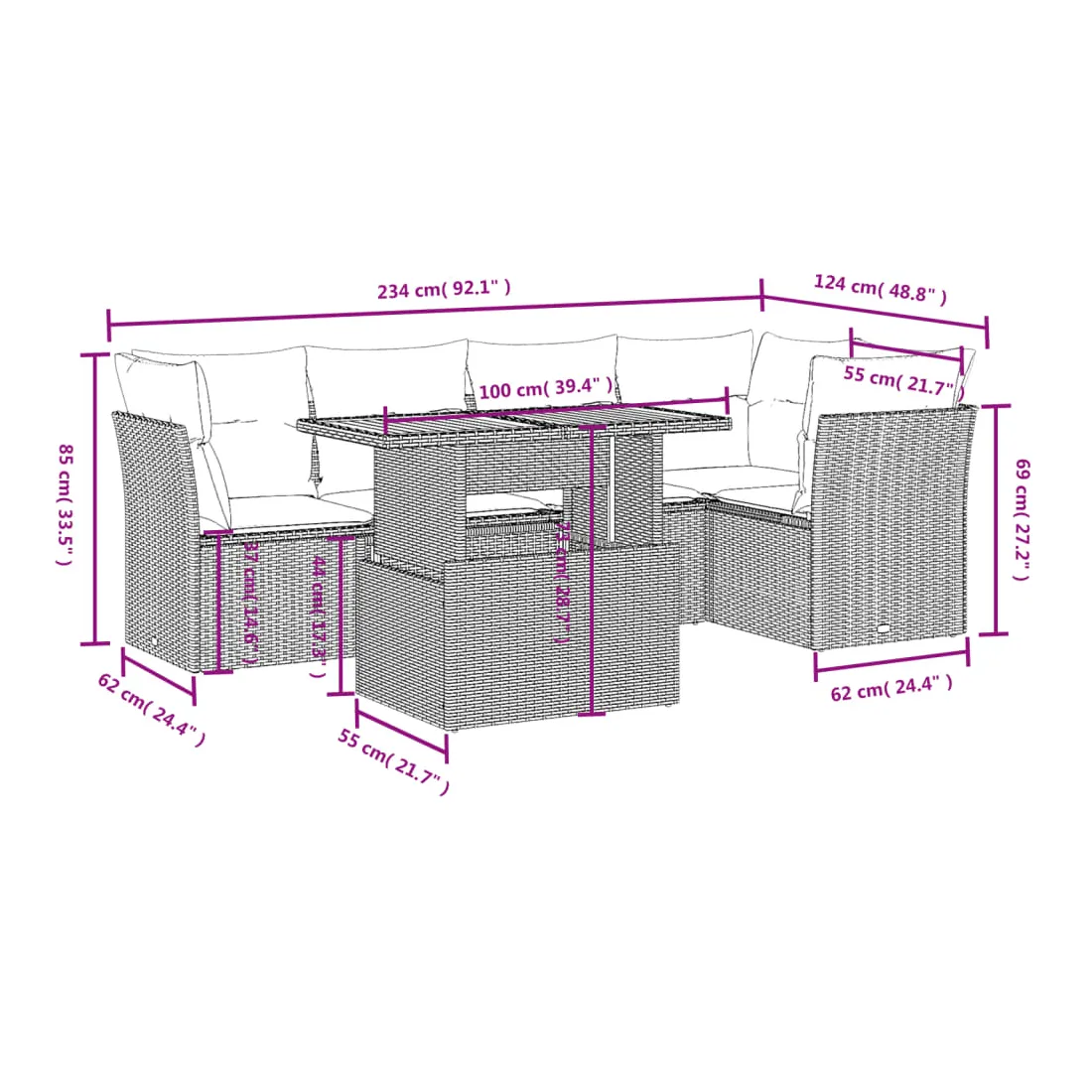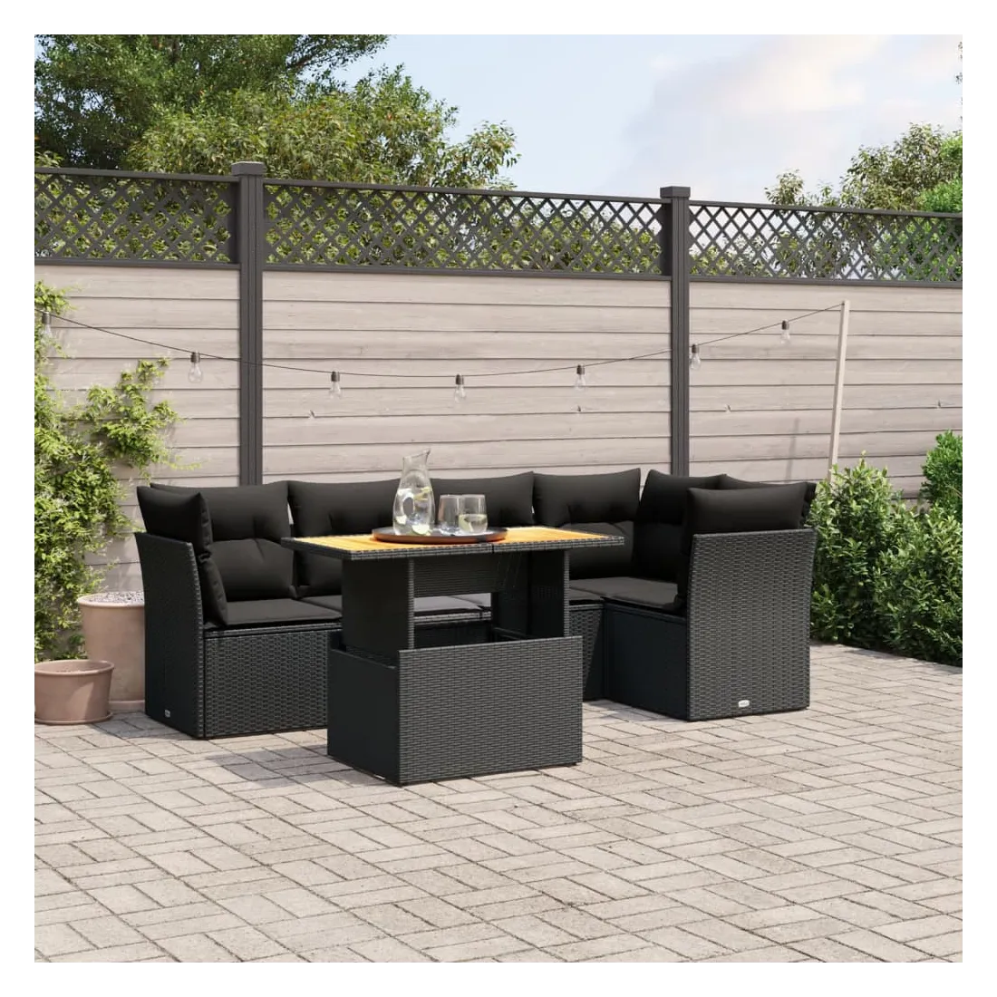 Cet ensemble de canapés de jardin est le complément parfait de votre arrière-cour, terrasse ou patio, offrant un espace confortable et accueillant pour discuter avec la famille et les amis ou simplement se détendre et profiter de l'extérieur. Matériau durable : la résine tressée, également connue sous le nom de poly rotin, est un matériau synthétique solide et nécessitant peu d'entretien qui ressemble au rotin naturel. Il est léger, facile à nettoyer et couramment utilisé pour les meubles d'extérieur en raison de sa durabilité et de ses propriétés de résistance aux intempéries.Dessus de table réglable : le dessus de table peut être soulevé pour rendre la table plus haute, ce qui transforme la table d'extérieur d'une table basse à une table de salle à manger. Elle est parfaite pour recevoir des invités ou prendre des repas à l'extérieur.Expérience d'assise confortable : ce mobilier d'extérieur, doté de coussins épais, offre une expérience d'assise confortable.Housse amovible et lavable : ces coussins de siège sont dotés de housses amovibles pour un lavage et un entretien faciles.Conception modulaire : cet ensemble de meubles d'extérieur a une conception modulaire, ce qui le rend complètement flexible et facile à déplacer, afin que vous puissiez créer un agencement de meubles d'extérieur personnalisé. Bon à savoir :Pour que vos meubles d'extérieur restent beaux, nous vous recommandons de les protéger avec une housse imperméable.