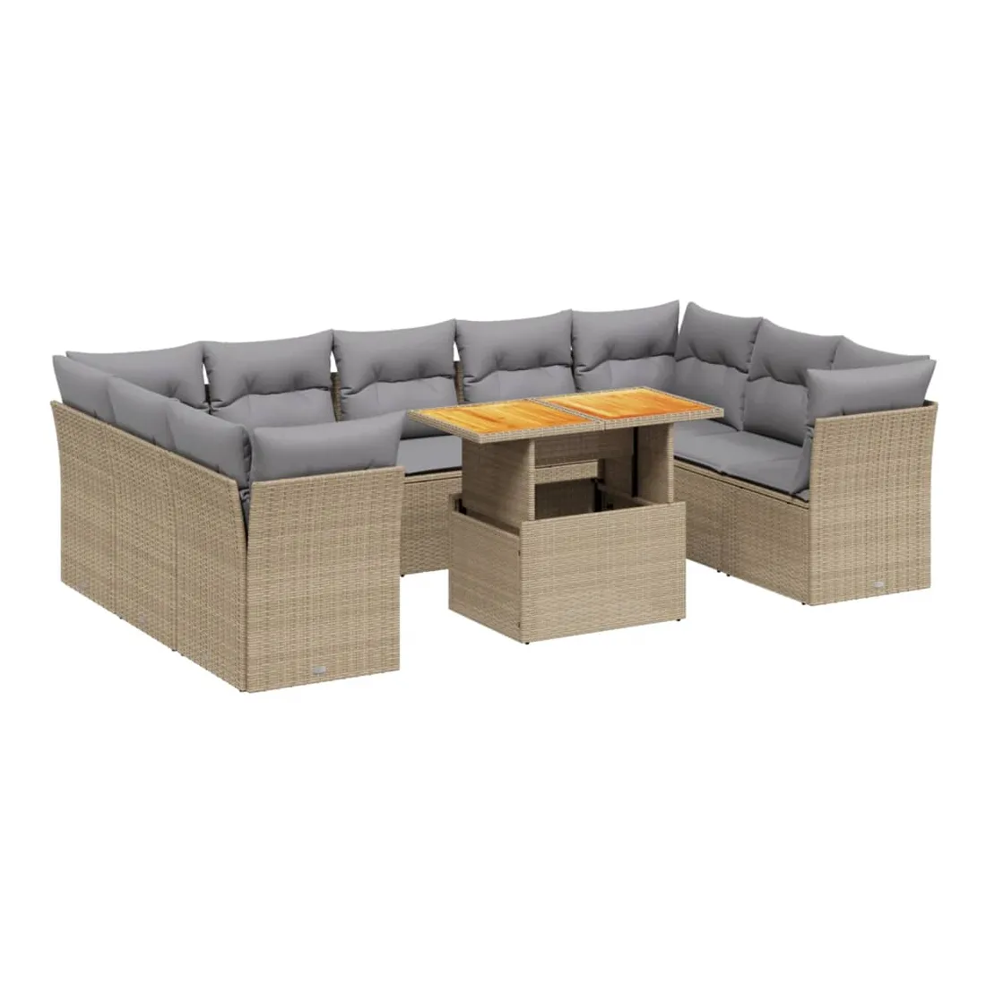 Salon de jardin avec coussins 10 pcs beige résine tressée