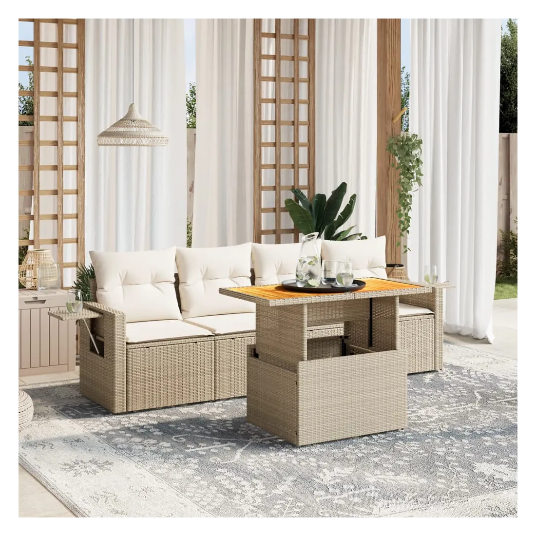 Cet ensemble de canapés de jardin est le complément parfait de votre arrière-cour, terrasse ou patio, offrant un espace confortable et accueillant pour discuter avec la famille et les amis ou simplement se détendre et profiter de l'extérieur. Matériau durable : la résine tressée, également connue sous le nom de poly rotin, est un matériau synthétique solide et nécessitant peu d'entretien qui ressemble au rotin naturel. Il est léger, facile à nettoyer et couramment utilisé pour les meubles d'extérieur en raison de sa durabilité et de ses propriétés de résistance aux intempéries.Dessus de table réglable : le dessus de table peut être soulevé pour rendre la table plus haute, ce qui transforme la table d'extérieur d'une table basse à une table de salle à manger. Elle est parfaite pour recevoir des invités ou prendre des repas à l'extérieur.Table d'appoint pratique : ce mobilier d'extérieur comprend une table d'appoint pliable avec un ressort à gaz sur les accoudoirs, offrant un endroit pratique pour garder vos essentiels à portée de main.Housse amovible et lavable : ces coussins de siège sont dotés de housses amovibles pour un lavage et un entretien faciles.Conception modulaire : cet ensemble de meubles d'extérieur a une conception modulaire, ce qui le rend complètement flexible et facile à déplacer, afin que vous puissiez créer un agencement de meubles d'extérieur personnalisé. Bon à savoir :Pour que vos meubles d'extérieur restent beaux, nous vous recommandons de les protéger avec une housse imperméable.