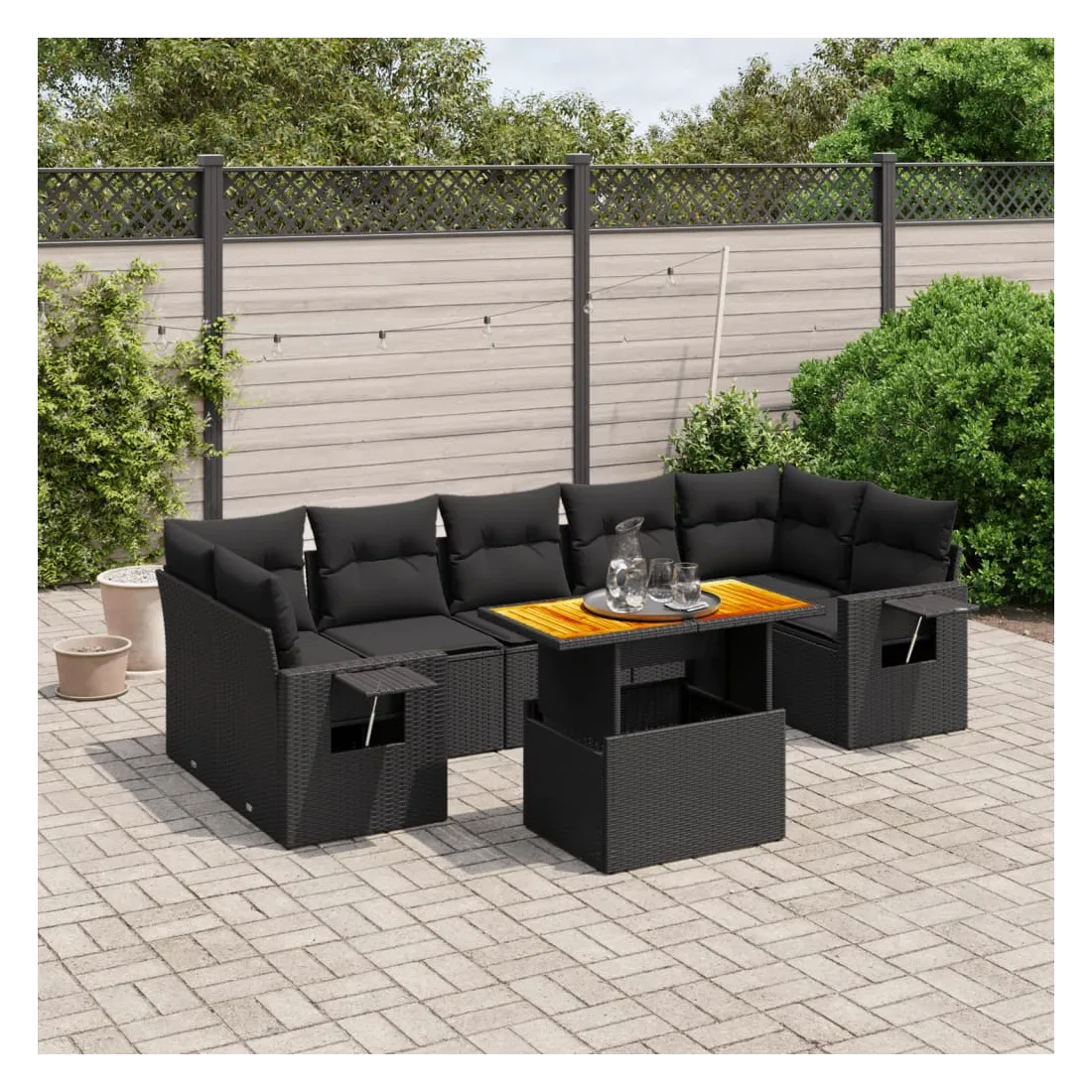 Cet ensemble de canapés de jardin est le complément parfait de votre arrière-cour, terrasse ou patio, offrant un espace confortable et accueillant pour discuter avec la famille et les amis ou simplement se détendre et profiter de l'extérieur. Matériau durable : la résine tressée, également connue sous le nom de poly rotin, est un matériau synthétique solide et nécessitant peu d'entretien qui ressemble au rotin naturel. Il est léger, facile à nettoyer et couramment utilisé pour les meubles d'extérieur en raison de sa durabilité et de ses propriétés de résistance aux intempéries.Dessus de table réglable : le dessus de table peut être soulevé pour rendre la table plus haute, ce qui transforme la table d'extérieur d'une table basse à une table de salle à manger. Elle est parfaite pour recevoir des invités ou prendre des repas à l'extérieur.Table d'appoint pratique : ce mobilier d'extérieur comprend une table d'appoint pliable avec un ressort à gaz sur les accoudoirs, offrant un endroit pratique pour garder vos essentiels à portée de main.Housse amovible et lavable : ces coussins de siège sont dotés de housses amovibles pour un lavage et un entretien faciles.Conception modulaire : cet ensemble de meubles d'extérieur a une conception modulaire, ce qui le rend complètement flexible et facile à déplacer, afin que vous puissiez créer un agencement de meubles d'extérieur personnalisé. Bon à savoir :Pour que vos meubles d'extérieur restent beaux, nous vous recommandons de les protéger avec une housse imperméable.