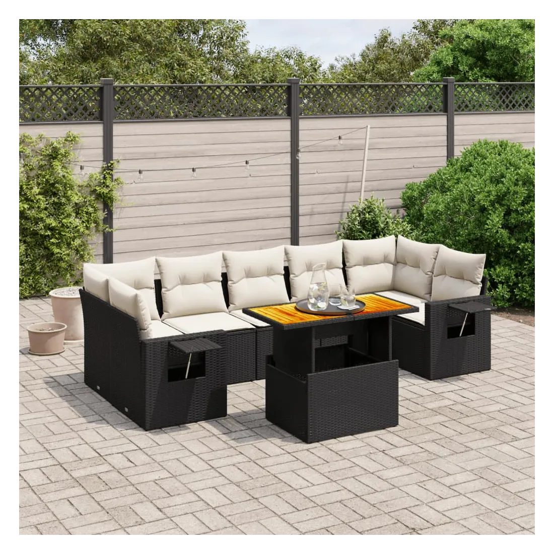 Cet ensemble de canapés de jardin est le complément parfait de votre arrière-cour, terrasse ou patio, offrant un espace confortable et accueillant pour discuter avec la famille et les amis ou simplement se détendre et profiter de l'extérieur. Matériau durable : la résine tressée, également connue sous le nom de poly rotin, est un matériau synthétique solide et nécessitant peu d'entretien qui ressemble au rotin naturel. Il est léger, facile à nettoyer et couramment utilisé pour les meubles d'extérieur en raison de sa durabilité et de ses propriétés de résistance aux intempéries.Dessus de table réglable : le dessus de table peut être soulevé pour rendre la table plus haute, ce qui transforme la table d'extérieur d'une table basse à une table de salle à manger. Elle est parfaite pour recevoir des invités ou prendre des repas à l'extérieur.Table d'appoint pratique : ce mobilier d'extérieur comprend une table d'appoint pliable avec un ressort à gaz sur les accoudoirs, offrant un endroit pratique pour garder vos essentiels à portée de main.Housse amovible et lavable : ces coussins de siège sont dotés de housses amovibles pour un lavage et un entretien faciles.Conception modulaire : cet ensemble de meubles d'extérieur a une conception modulaire, ce qui le rend complètement flexible et facile à déplacer, afin que vous puissiez créer un agencement de meubles d'extérieur personnalisé. Bon à savoir :Pour que vos meubles d'extérieur restent beaux, nous vous recommandons de les protéger avec une housse imperméable.
