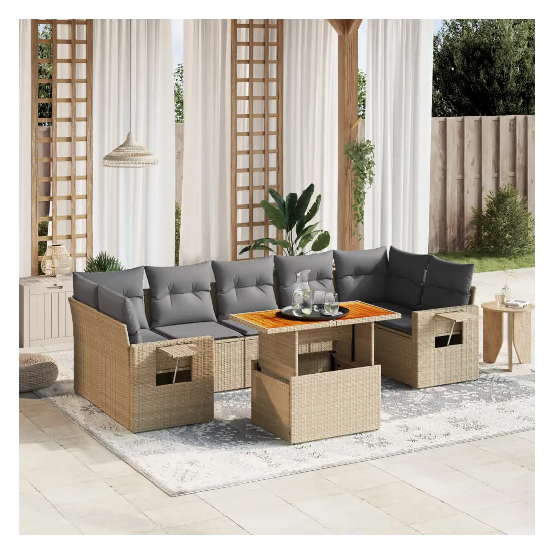 Cet ensemble de canapés de jardin est le complément parfait de votre arrière-cour, terrasse ou patio, offrant un espace confortable et accueillant pour discuter avec la famille et les amis ou simplement se détendre et profiter de l'extérieur. Matériau durable : la résine tressée, également connue sous le nom de poly rotin, est un matériau synthétique solide et nécessitant peu d'entretien qui ressemble au rotin naturel. Il est léger, facile à nettoyer et couramment utilisé pour les meubles d'extérieur en raison de sa durabilité et de ses propriétés de résistance aux intempéries.Dessus de table réglable : le dessus de table peut être soulevé pour rendre la table plus haute, ce qui transforme la table d'extérieur d'une table basse à une table de salle à manger. Elle est parfaite pour recevoir des invités ou prendre des repas à l'extérieur.Table d'appoint pratique : ce mobilier d'extérieur comprend une table d'appoint pliable avec un ressort à gaz sur les accoudoirs, offrant un endroit pratique pour garder vos essentiels à portée de main.Housse amovible et lavable : ces coussins de siège sont dotés de housses amovibles pour un lavage et un entretien faciles.Conception modulaire : cet ensemble de meubles d'extérieur a une conception modulaire, ce qui le rend complètement flexible et facile à déplacer, afin que vous puissiez créer un agencement de meubles d'extérieur personnalisé. Bon à savoir :Pour que vos meubles d'extérieur restent beaux, nous vous recommandons de les protéger avec une housse imperméable.