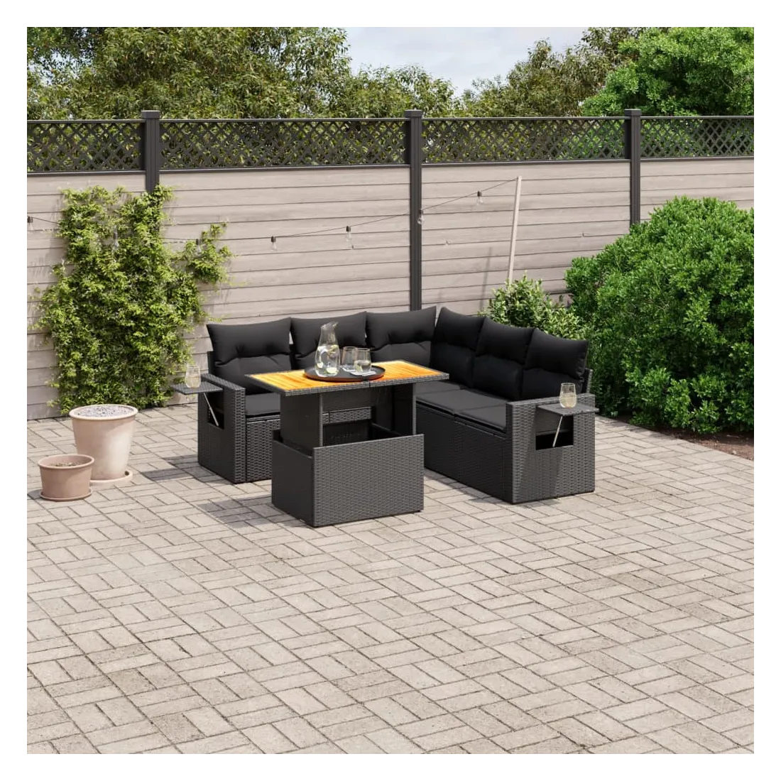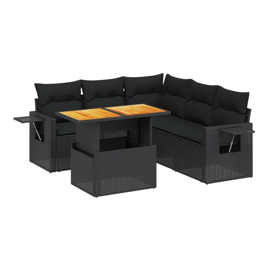 Salon de jardin 6 pcs avec coussins noir résine tressée