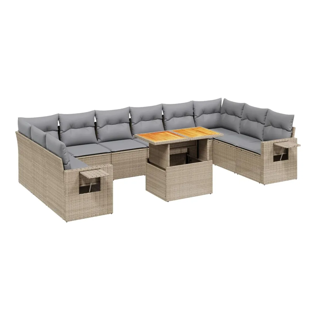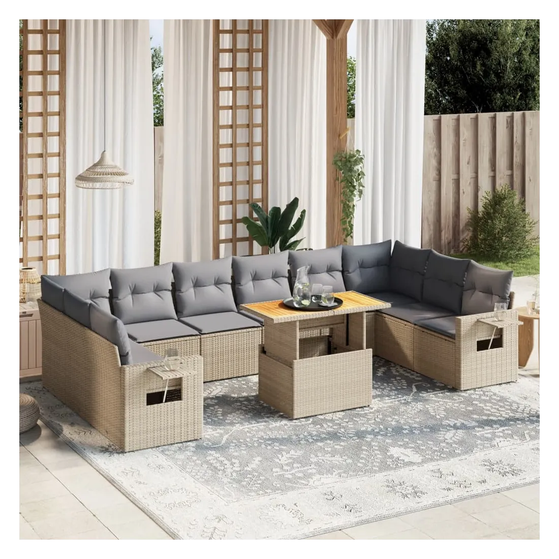 Salon de jardin 11 pcs avec coussins beige résine tressée