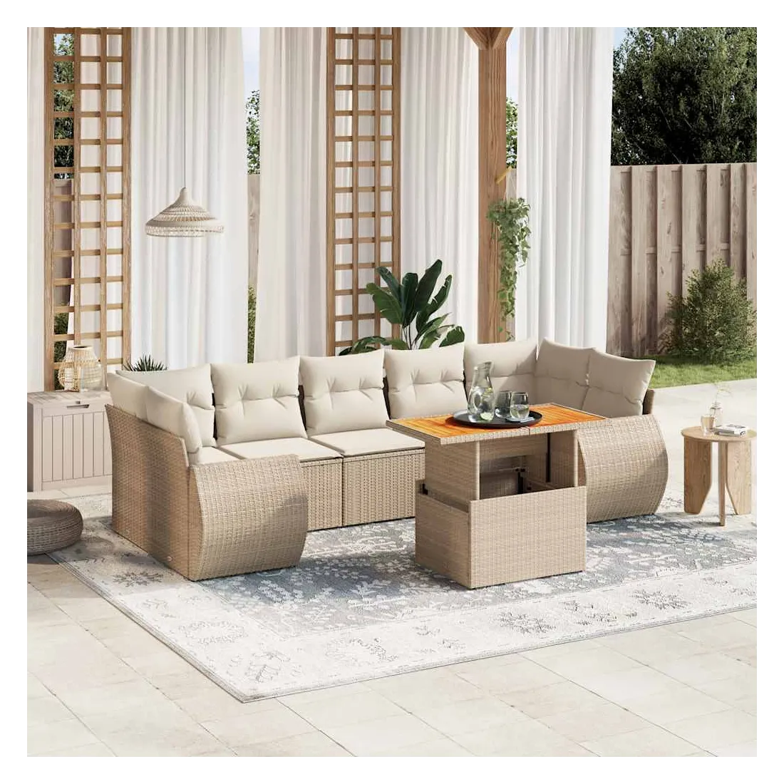 Cet ensemble de canapés de jardin est le complément parfait de votre arrière-cour, terrasse ou patio, offrant un espace confortable et accueillant pour discuter avec la famille et les amis ou simplement se détendre et profiter de l'extérieur. Matériau durable : la résine tressée, également connue sous le nom de poly rotin, est un matériau synthétique solide et nécessitant peu d'entretien qui ressemble au rotin naturel. Il est léger, facile à nettoyer et couramment utilisé pour les meubles d'extérieur en raison de sa durabilité et de ses propriétés de résistance aux intempéries.Dessus de table réglable : le dessus de table peut être soulevé pour rendre la table plus haute, ce qui transforme la table d'extérieur d'une table basse à une table de salle à manger. Elle est parfaite pour recevoir des invités ou prendre des repas à l'extérieur.Expérience d'assise confortable : ce mobilier d'extérieur, doté de coussins épais, offre une expérience d'assise confortable.Housse amovible et lavable : ces coussins de siège sont dotés de housses amovibles pour un lavage et un entretien faciles.Conception modulaire : cet ensemble de meubles d'extérieur a une conception modulaire, ce qui le rend complètement flexible et facile à déplacer, afin que vous puissiez créer un agencement de meubles d'extérieur personnalisé. Bon à savoir :Pour que vos meubles d'extérieur restent beaux, nous vous recommandons de les protéger avec une housse imperméable.