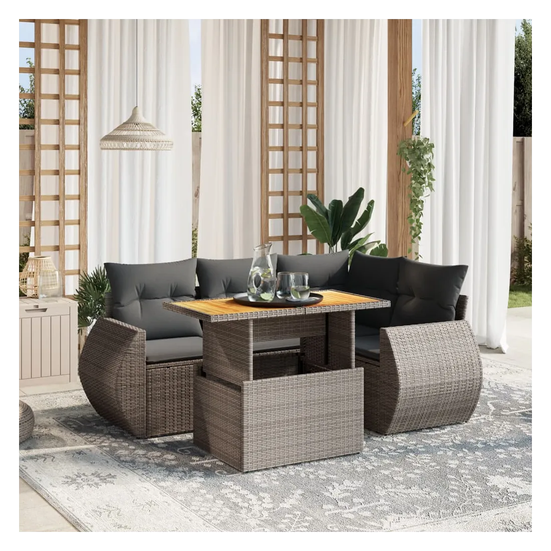 - Matériau : résine tressée, acier enduit de poudre, bois d'acacia massif avec finition à l'huile