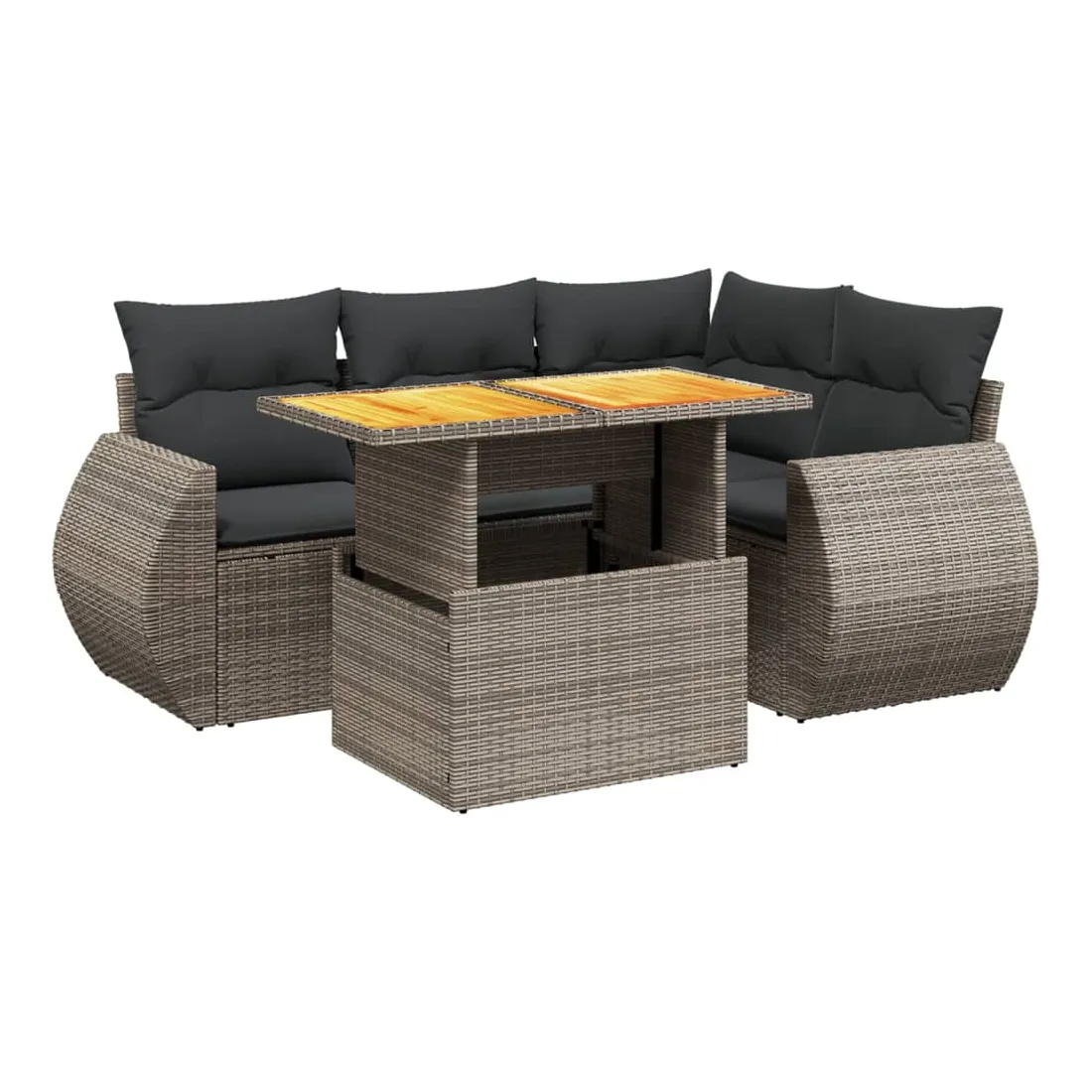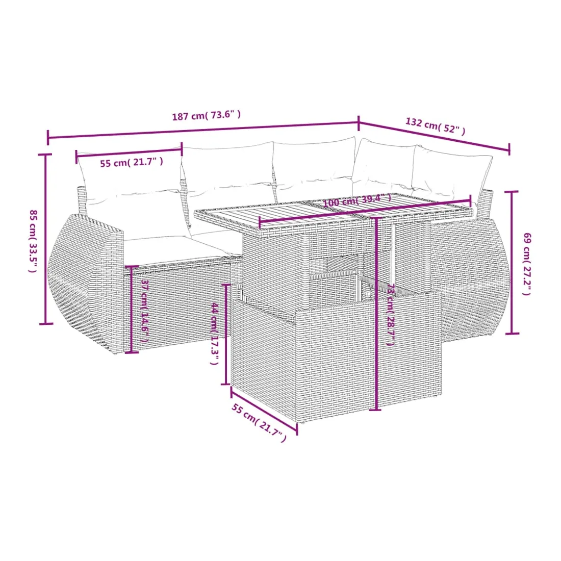Cet ensemble de canapés de jardin est le complément parfait de votre arrière-cour, terrasse ou patio, offrant un espace confortable et accueillant pour discuter avec la famille et les amis ou simplement se détendre et profiter de l'extérieur. Matériau durable : la résine tressée, également connue sous le nom de poly rotin, est un matériau synthétique solide et nécessitant peu d'entretien qui ressemble au rotin naturel. Il est léger, facile à nettoyer et couramment utilisé pour les meubles d'extérieur en raison de sa durabilité et de ses propriétés de résistance aux intempéries.Dessus de table réglable : le dessus de table peut être soulevé pour rendre la table plus haute, ce qui transforme la table d'extérieur d'une table basse à une table de salle à manger. Elle est parfaite pour recevoir des invités ou prendre des repas à l'extérieur.Expérience d'assise confortable : ce mobilier d'extérieur, doté de coussins épais, offre une expérience d'assise confortable.Housse amovible et lavable : ces coussins de siège sont dotés de housses amovibles pour un lavage et un entretien faciles.Conception modulaire : cet ensemble de meubles d'extérieur a une conception modulaire, ce qui le rend complètement flexible et facile à déplacer, afin que vous puissiez créer un agencement de meubles d'extérieur personnalisé. Bon à savoir :Pour que vos meubles d'extérieur restent beaux, nous vous recommandons de les protéger avec une housse imperméable.