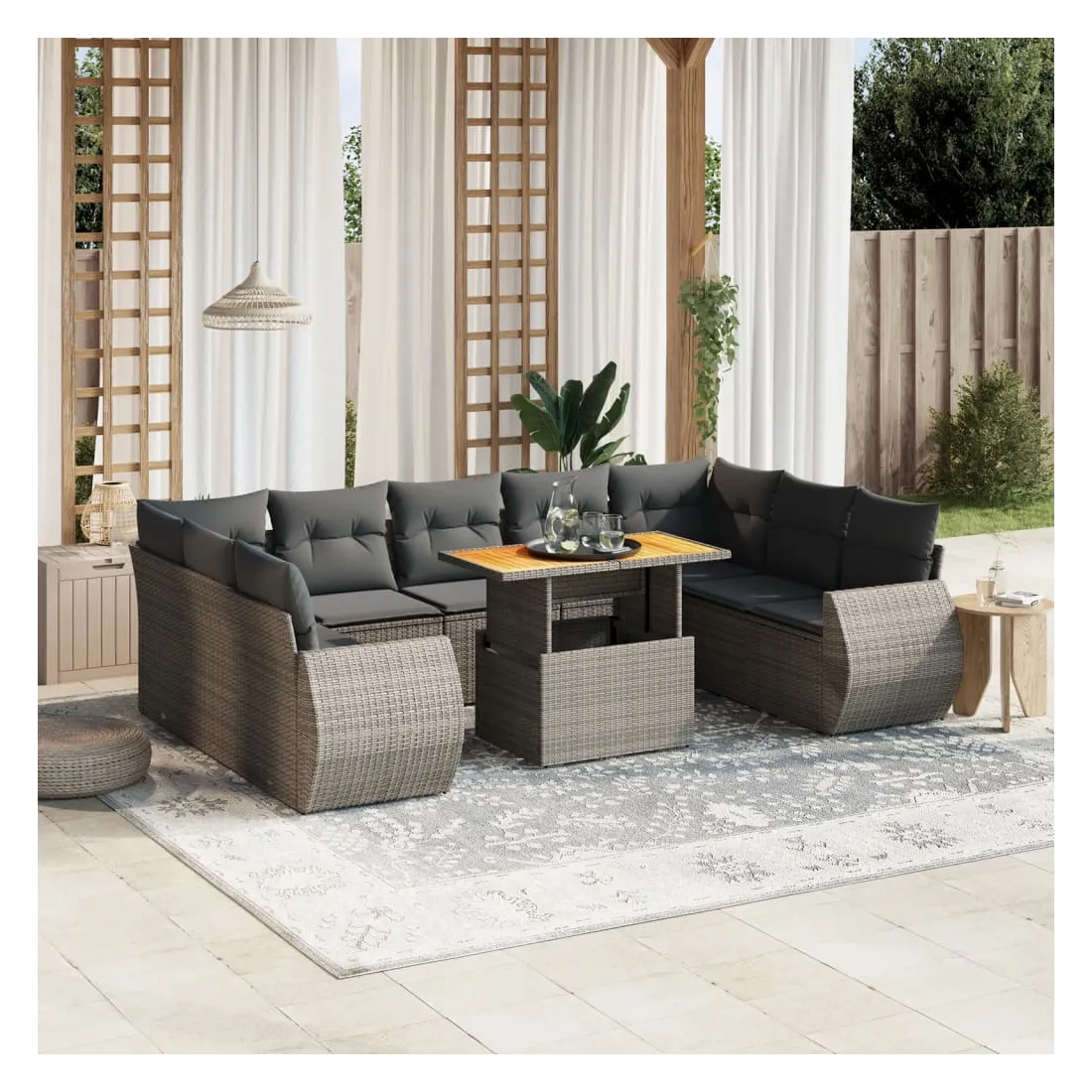 Salon de jardin avec coussins 10 pcs gris résine tressée