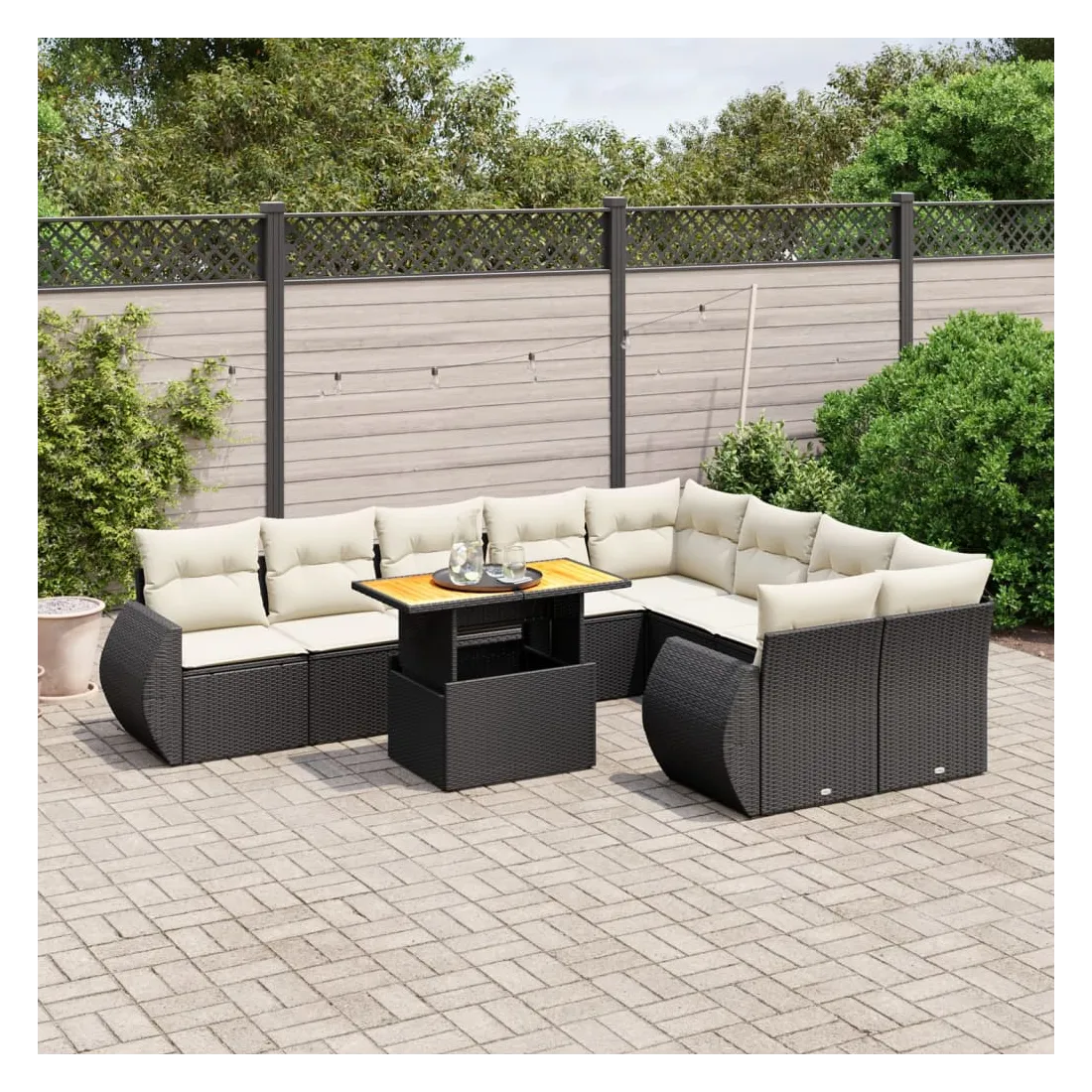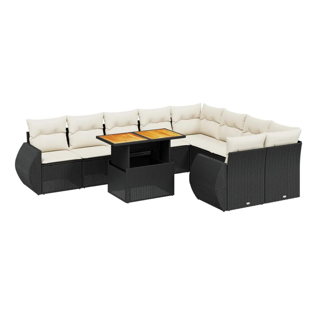 Salon de jardin 10 pcs avec coussins noir résine tressée
