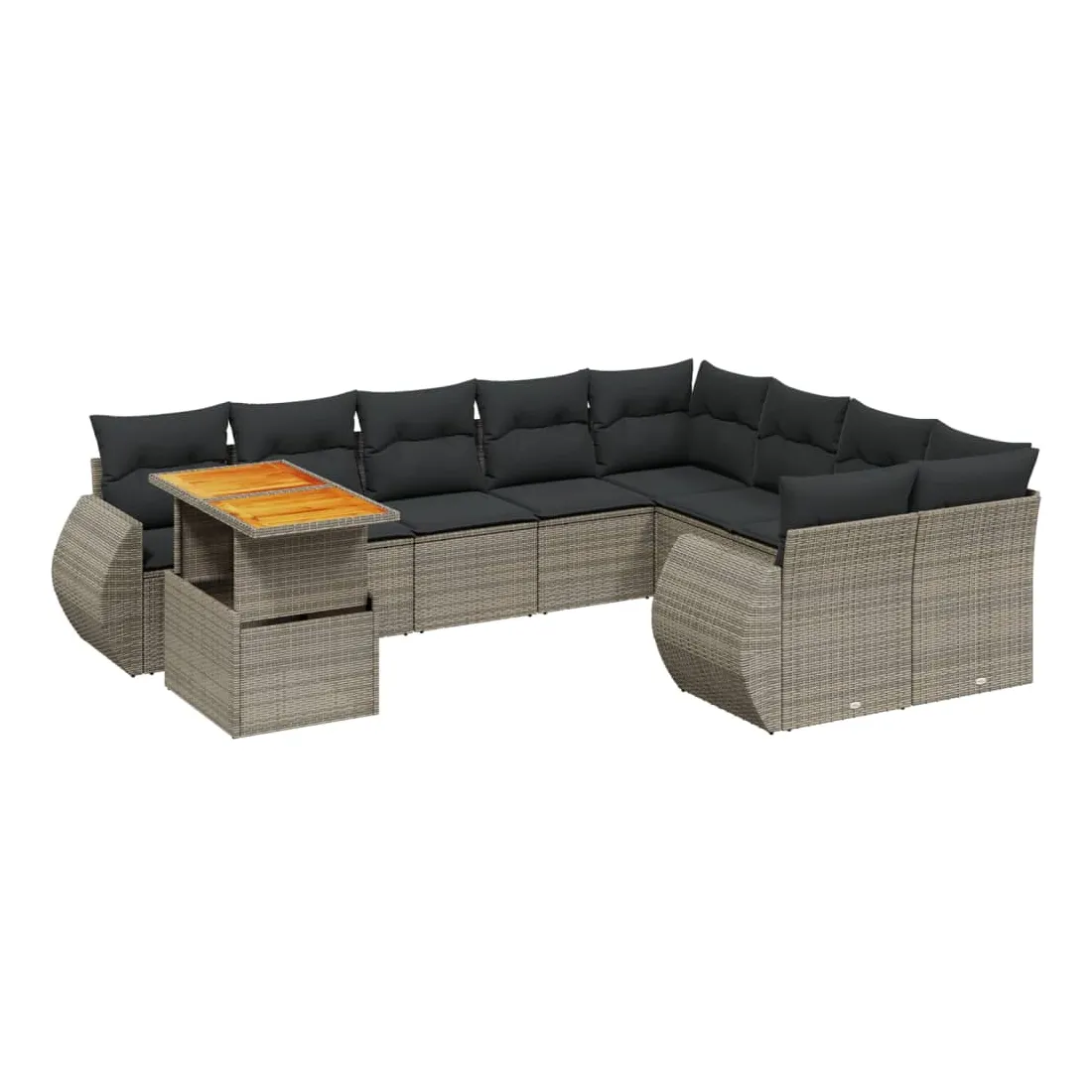 Salon de jardin avec coussins 10 pcs gris résine tressée
