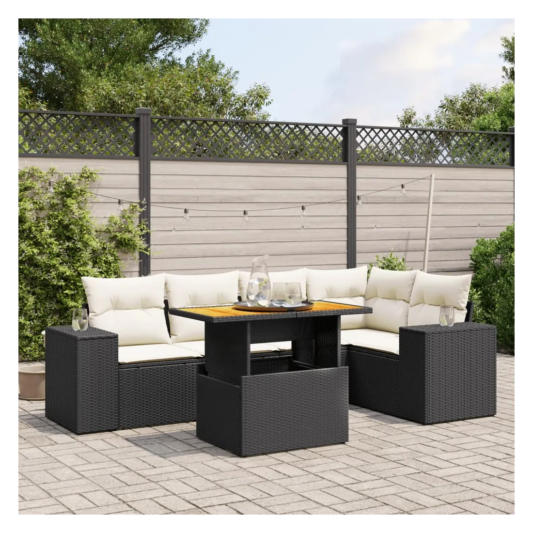 Cet ensemble de canapés de jardin est le complément parfait de votre arrière-cour, terrasse ou patio, offrant un espace confortable et accueillant pour discuter avec la famille et les amis ou simplement se détendre et profiter de l'extérieur. Matériau durable : la résine tressée, également connue sous le nom de poly rotin, est un matériau synthétique solide et nécessitant peu d'entretien qui ressemble au rotin naturel. Il est léger, facile à nettoyer et couramment utilisé pour les meubles d'extérieur en raison de sa durabilité et de ses propriétés de résistance aux intempéries.Dessus de table réglable : le dessus de table peut être soulevé pour rendre la table plus haute, ce qui transforme la table d'extérieur d'une table basse à une table de salle à manger. Elle est parfaite pour recevoir des invités ou prendre des repas à l'extérieur.Expérience d'assise confortable : ce mobilier d'extérieur, doté de coussins épais, offre une expérience d'assise confortable.Housse amovible et lavable : ces coussins de siège sont dotés de housses amovibles pour un lavage et un entretien faciles.Conception modulaire : cet ensemble de meubles d'extérieur a une conception modulaire, ce qui le rend complètement flexible et facile à déplacer, afin que vous puissiez créer un agencement de meubles d'extérieur personnalisé. Bon à savoir :Pour que vos meubles d'extérieur restent beaux, nous vous recommandons de les protéger avec une housse imperméable.