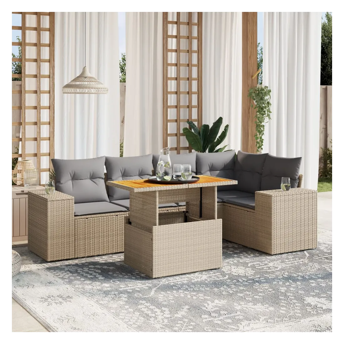 Salon de jardin avec coussins 6 pcs beige résine tressée