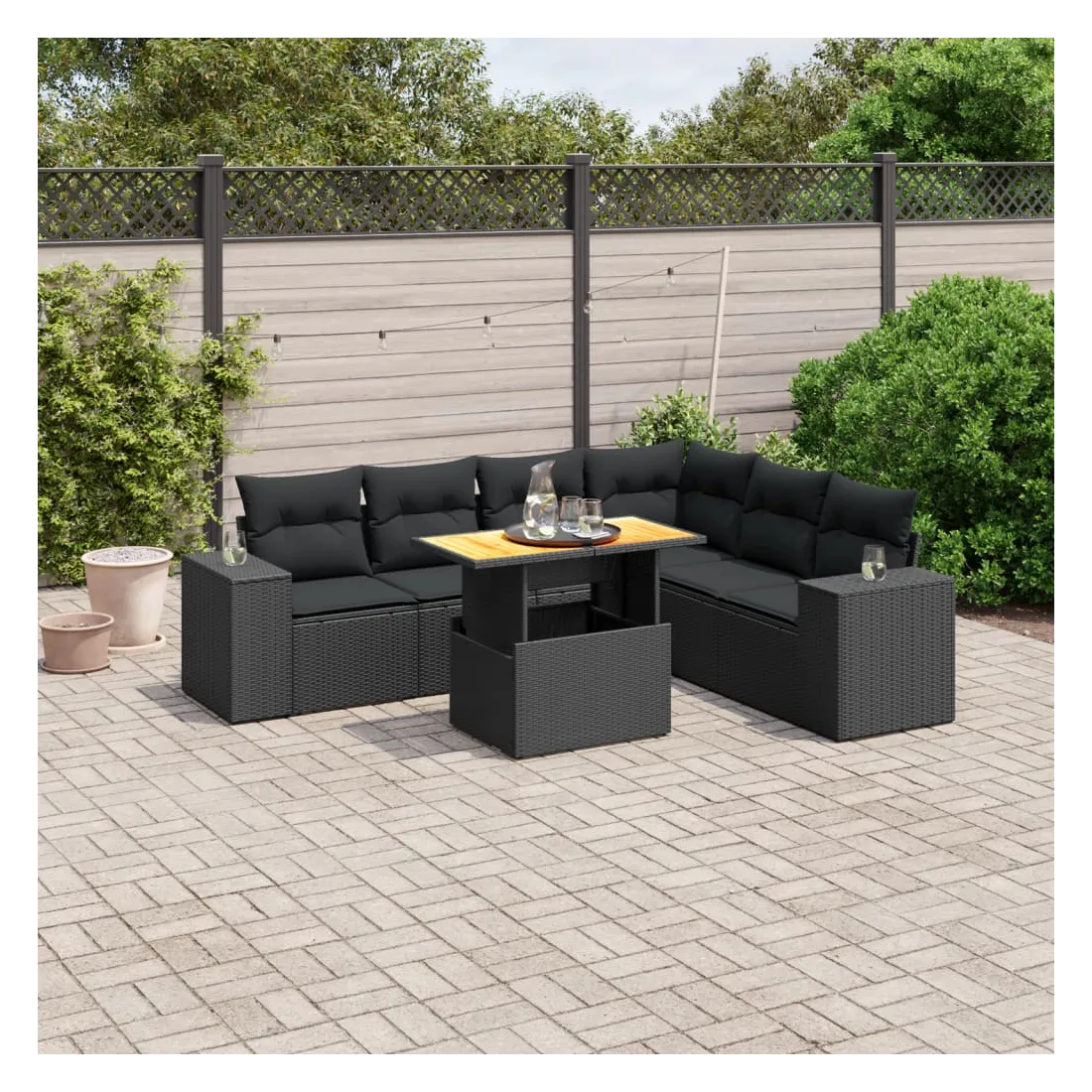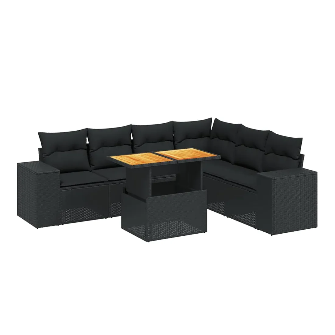 Salon de jardin 7 pcs avec coussins noir résine tressée
