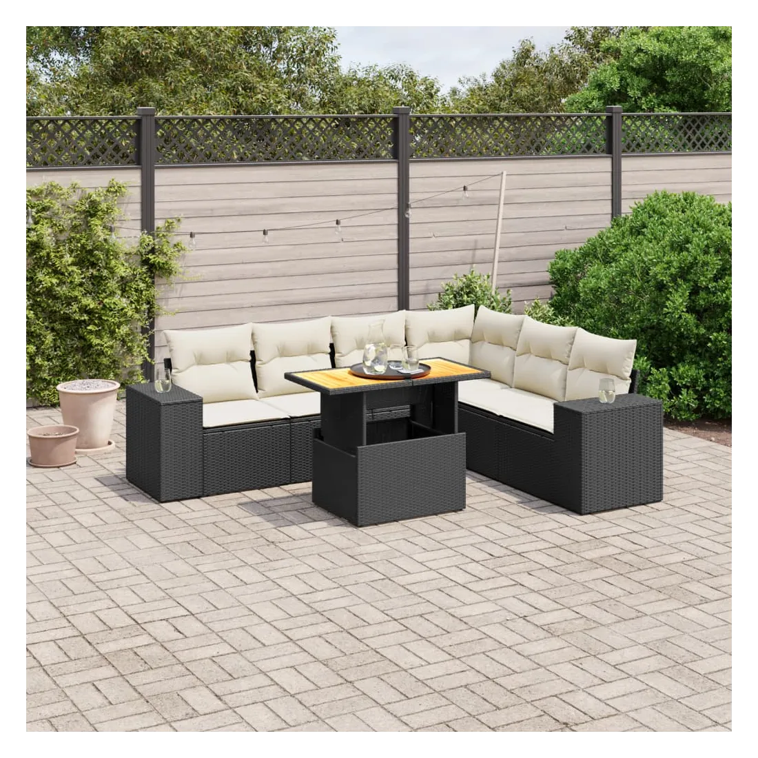 Cet ensemble de canapés de jardin est le complément parfait de votre arrière-cour, terrasse ou patio, offrant un espace confortable et accueillant pour discuter avec la famille et les amis ou simplement se détendre et profiter de l'extérieur. Matériau durable : la résine tressée, également connue sous le nom de poly rotin, est un matériau synthétique solide et nécessitant peu d'entretien qui ressemble au rotin naturel. Il est léger, facile à nettoyer et couramment utilisé pour les meubles d'extérieur en raison de sa durabilité et de ses propriétés de résistance aux intempéries.Dessus de table réglable : le dessus de table peut être soulevé pour rendre la table plus haute, ce qui transforme la table d'extérieur d'une table basse à une table de salle à manger. Elle est parfaite pour recevoir des invités ou prendre des repas à l'extérieur.Expérience d'assise confortable : ce mobilier d'extérieur, doté de coussins épais, offre une expérience d'assise confortable.Housse amovible et lavable : ces coussins de siège sont dotés de housses amovibles pour un lavage et un entretien faciles.Conception modulaire : cet ensemble de meubles d'extérieur a une conception modulaire, ce qui le rend complètement flexible et facile à déplacer, afin que vous puissiez créer un agencement de meubles d'extérieur personnalisé. Bon à savoir :Pour que vos meubles d'extérieur restent beaux, nous vous recommandons de les protéger avec une housse imperméable.