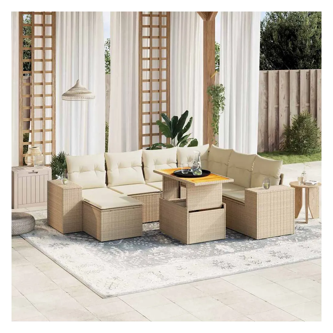 Cet ensemble de canapés de jardin est le complément parfait de votre arrière-cour, terrasse ou patio, offrant un espace confortable et accueillant pour discuter avec la famille et les amis ou simplement se détendre et profiter de l'extérieur. Matériau durable : la résine tressée, également connue sous le nom de poly rotin, est un matériau synthétique solide et nécessitant peu d'entretien qui ressemble au rotin naturel. Il est léger, facile à nettoyer et couramment utilisé pour les meubles d'extérieur en raison de sa durabilité et de ses propriétés de résistance aux intempéries.Dessus de table réglable : le dessus de table peut être soulevé pour rendre la table plus haute, ce qui transforme la table d'extérieur d'une table basse à une table de salle à manger. Elle est parfaite pour recevoir des invités ou prendre des repas à l'extérieur.Expérience d'assise confortable : ce mobilier d'extérieur, doté de coussins épais, offre une expérience d'assise confortable.Housse amovible et lavable : ces coussins de siège sont dotés de housses amovibles pour un lavage et un entretien faciles.Conception modulaire : cet ensemble de meubles d'extérieur a une conception modulaire, ce qui le rend complètement flexible et facile à déplacer, afin que vous puissiez créer un agencement de meubles d'extérieur personnalisé. Bon à savoir :Pour que vos meubles d'extérieur restent beaux, nous vous recommandons de les protéger avec une housse imperméable.