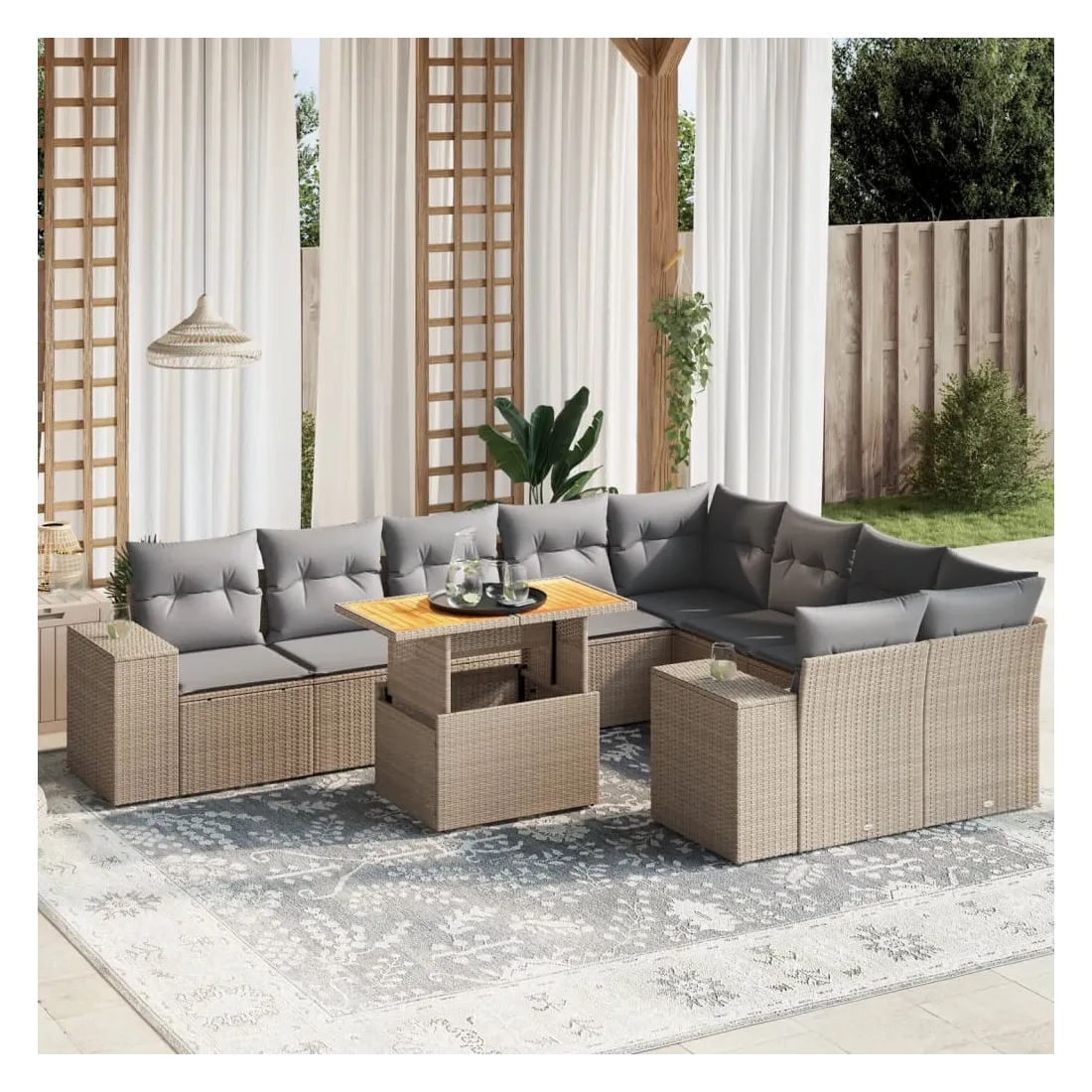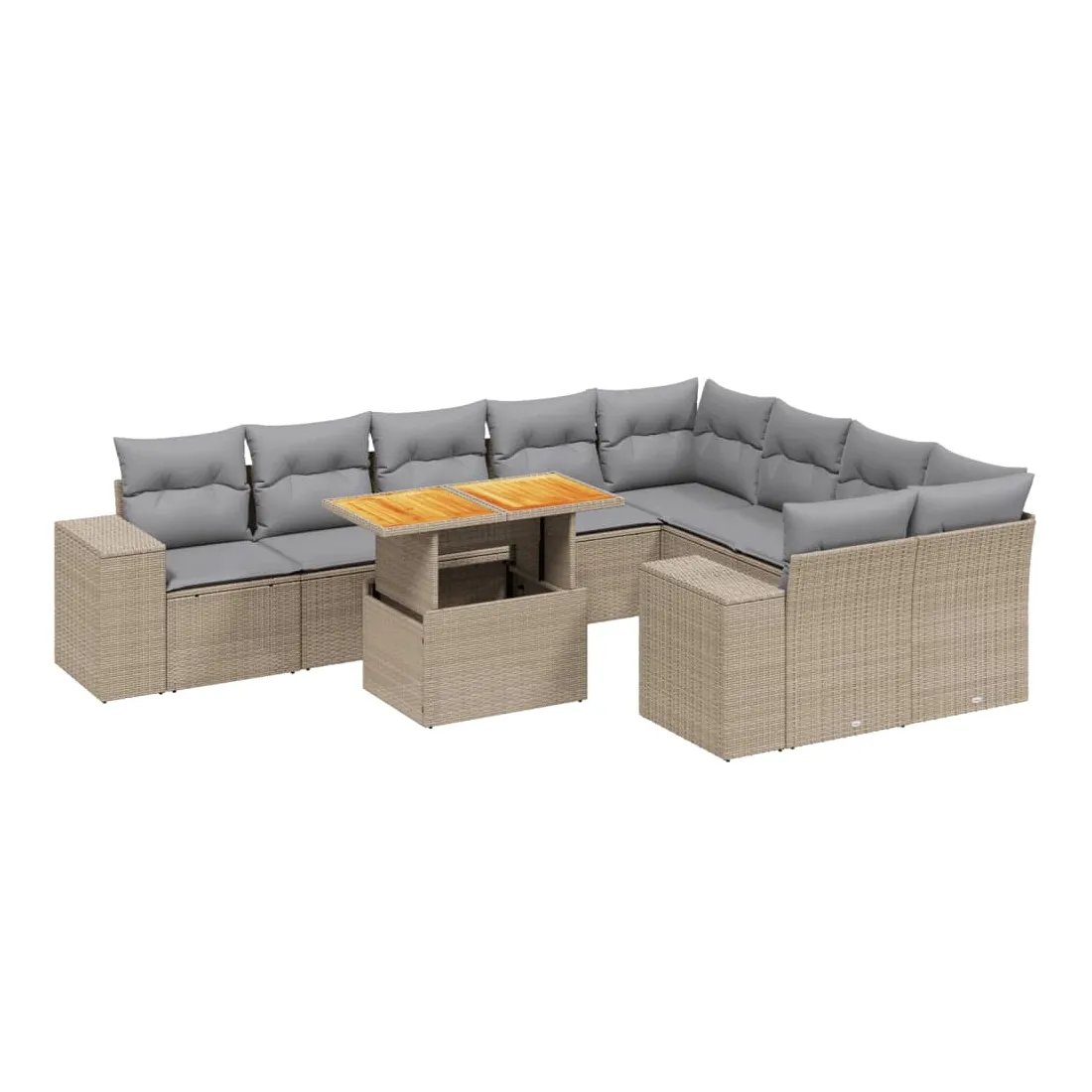 Salon de jardin avec coussins 10 pcs beige résine tressée