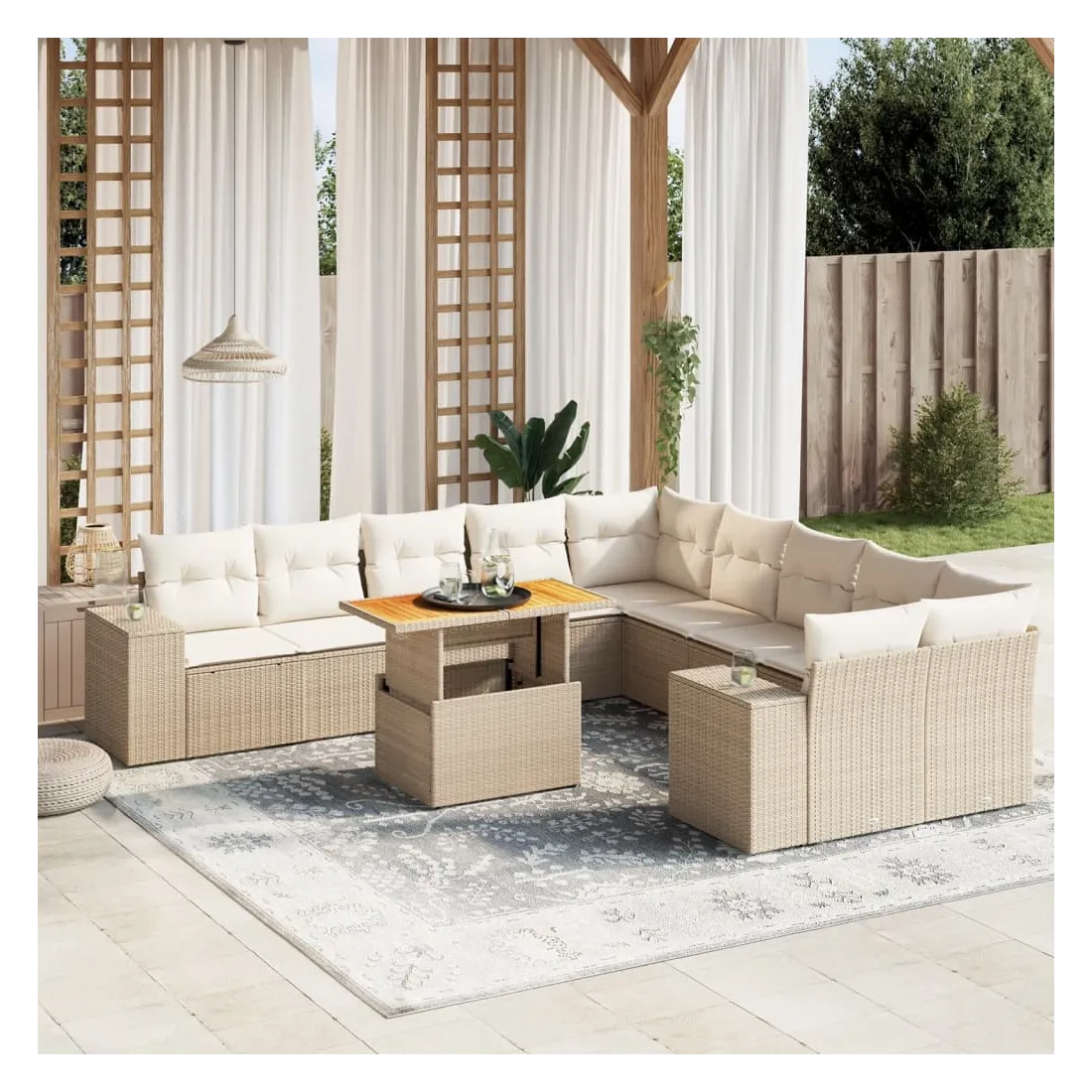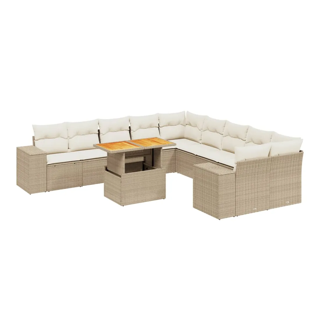 Salon de jardin 11 pcs avec coussins beige résine tressée