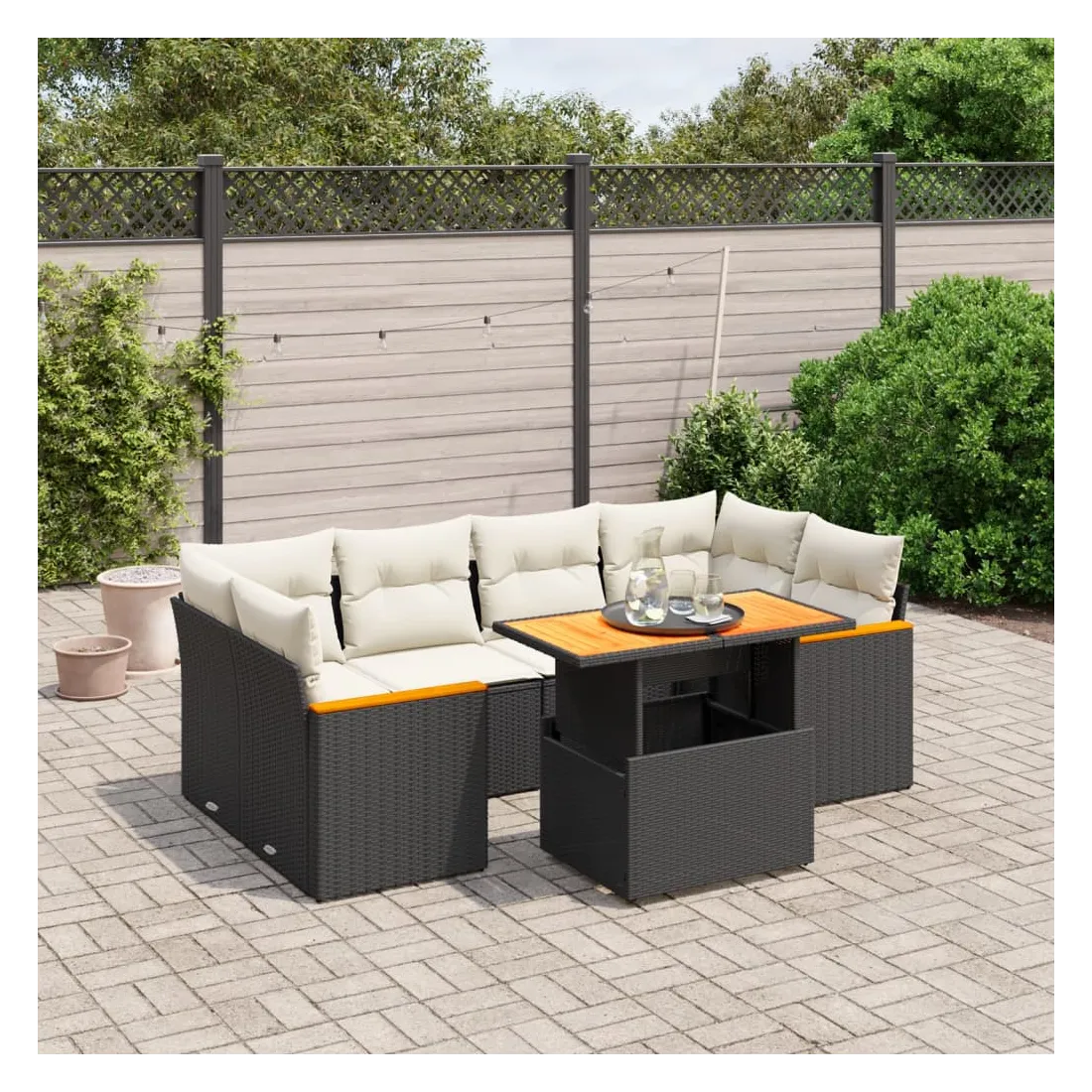 Cet ensemble de canapés de jardin est le complément parfait de votre arrière-cour, terrasse ou patio, offrant un espace confortable et accueillant pour discuter avec la famille et les amis ou simplement se détendre et profiter de l'extérieur. Matériau durable : la résine tressée, également connue sous le nom de poly rotin, est un matériau synthétique solide et nécessitant peu d'entretien qui ressemble au rotin naturel. Il est léger, facile à nettoyer et couramment utilisé pour les meubles d'extérieur en raison de sa durabilité et de ses propriétés de résistance aux intempéries.Dessus de table réglable : le dessus de table peut être soulevé pour rendre la table plus haute, ce qui transforme la table d'extérieur d'une table basse à une table de salle à manger. Elle est parfaite pour recevoir des invités ou prendre des repas à l'extérieur.Expérience d'assise confortable : ce mobilier d'extérieur, doté de coussins épais, offre une expérience d'assise confortable.Housse amovible et lavable : ces coussins de siège sont dotés de housses amovibles pour un lavage et un entretien faciles.Conception modulaire : cet ensemble de meubles d'extérieur a une conception modulaire, ce qui le rend complètement flexible et facile à déplacer, afin que vous puissiez créer un agencement de meubles d'extérieur personnalisé. Bon à savoir :Pour que vos meubles d'extérieur restent beaux, nous vous recommandons de les protéger avec une housse imperméable.