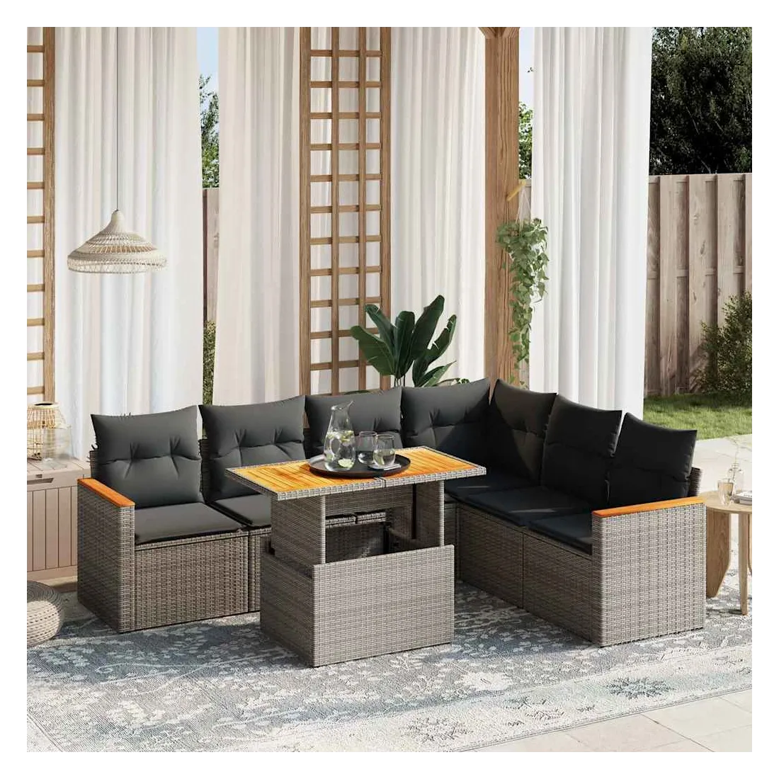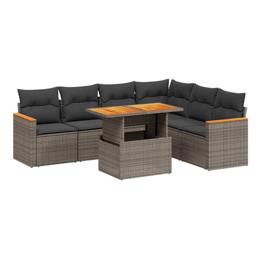 Salon de jardin avec coussins 7 pcs gris résine tressée