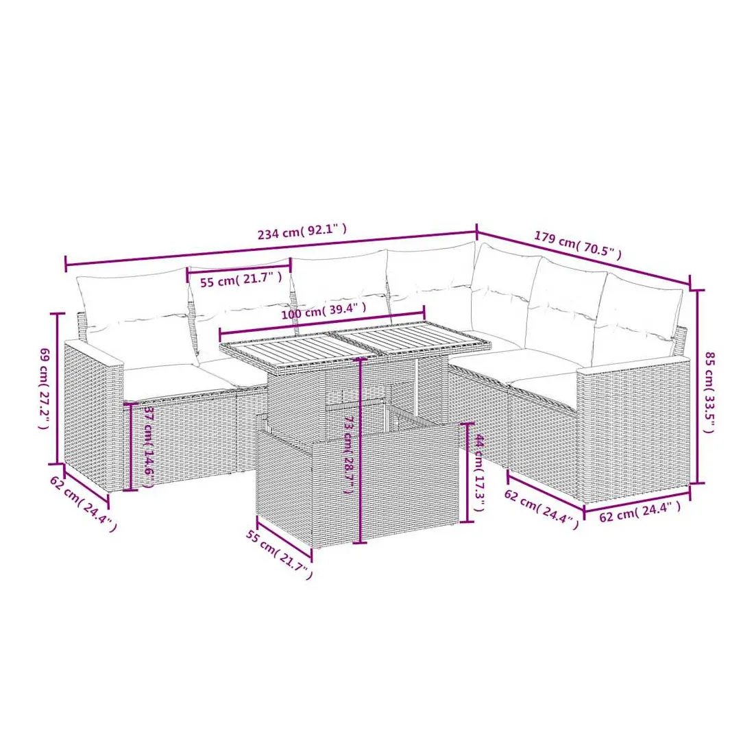 Cet ensemble de canapés de jardin est le complément parfait de votre arrière-cour, terrasse ou patio, offrant un espace confortable et accueillant pour discuter avec la famille et les amis ou simplement se détendre et profiter de l'extérieur. Matériau durable : la résine tressée, également connue sous le nom de poly rotin, est un matériau synthétique solide et nécessitant peu d'entretien qui ressemble au rotin naturel. Il est léger, facile à nettoyer et couramment utilisé pour les meubles d'extérieur en raison de sa durabilité et de ses propriétés de résistance aux intempéries.Dessus de table réglable : le dessus de table peut être soulevé pour rendre la table plus haute, ce qui transforme la table d'extérieur d'une table basse à une table de salle à manger. Elle est parfaite pour recevoir des invités ou prendre des repas à l'extérieur.Expérience d'assise confortable : ce mobilier d'extérieur, doté de coussins épais, offre une expérience d'assise confortable.Housse amovible et lavable : ces coussins de siège sont dotés de housses amovibles pour un lavage et un entretien faciles.Conception modulaire : cet ensemble de meubles d'extérieur a une conception modulaire, ce qui le rend complètement flexible et facile à déplacer, afin que vous puissiez créer un agencement de meubles d'extérieur personnalisé. Bon à savoir :Pour que vos meubles d'extérieur restent beaux, nous vous recommandons de les protéger avec une housse imperméable.
