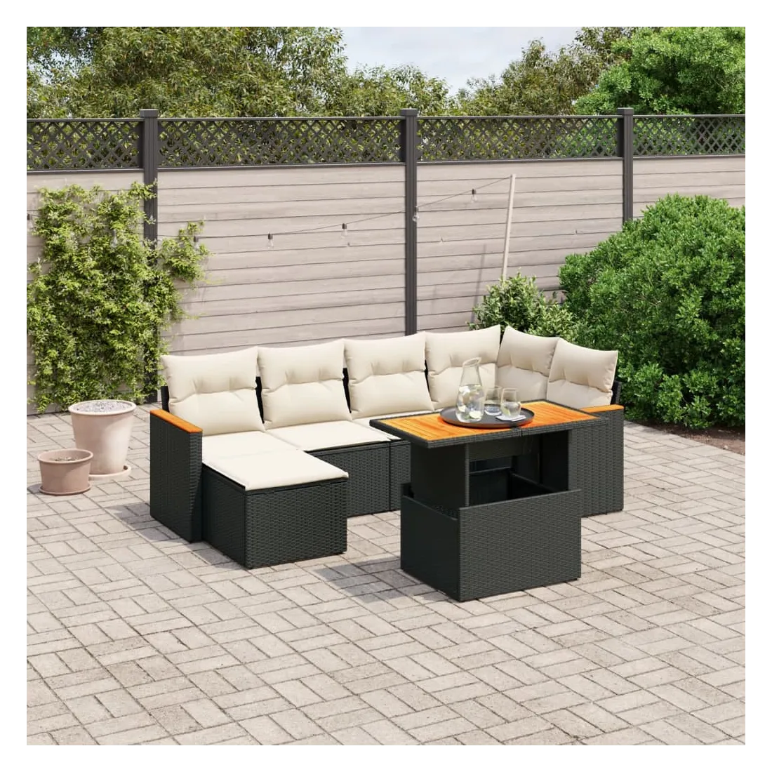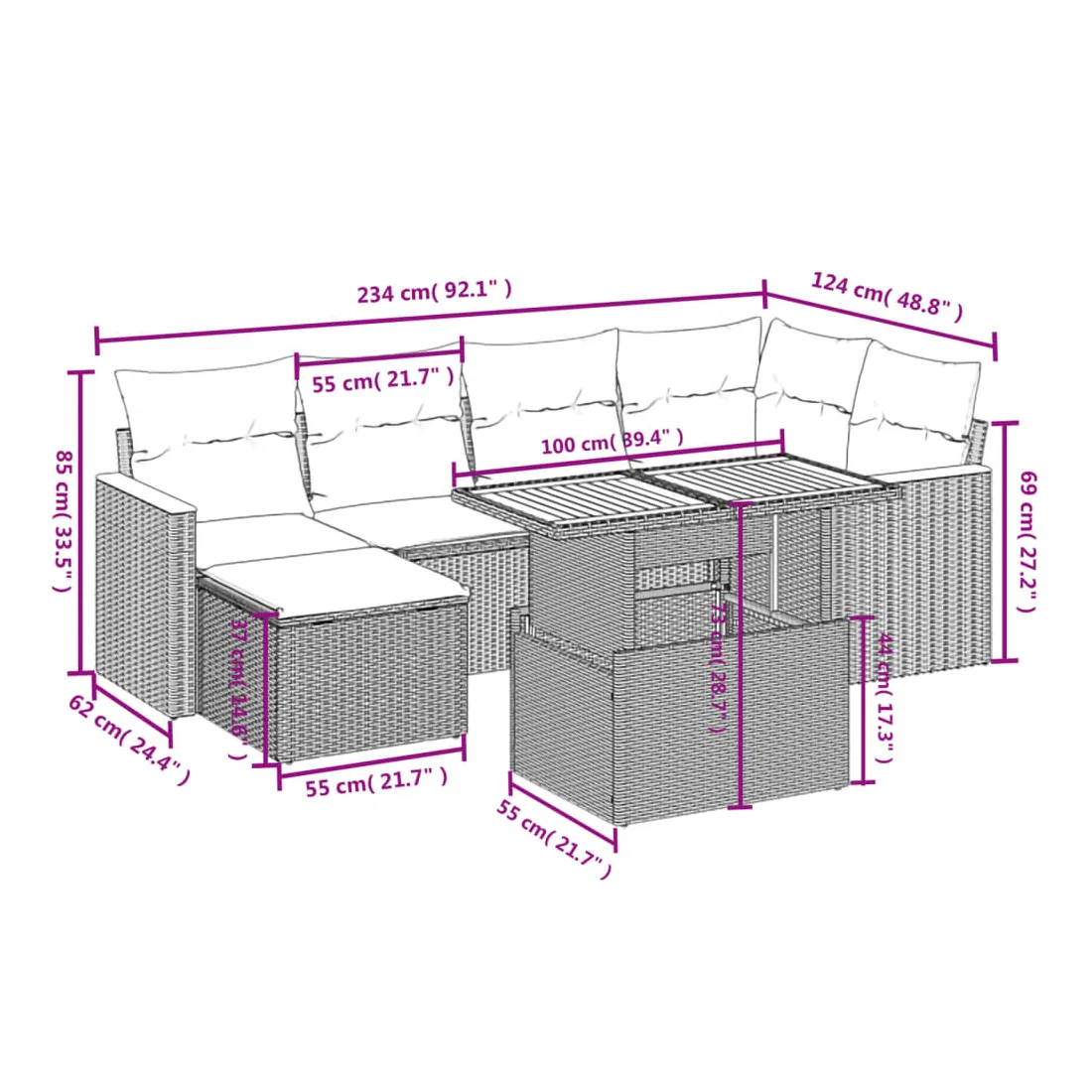 Cet ensemble de canapés de jardin est le complément parfait de votre arrière-cour, terrasse ou patio, offrant un espace confortable et accueillant pour discuter avec la famille et les amis ou simplement se détendre et profiter de l'extérieur. Matériau durable : la résine tressée, également connue sous le nom de poly rotin, est un matériau synthétique solide et nécessitant peu d'entretien qui ressemble au rotin naturel. Il est léger, facile à nettoyer et couramment utilisé pour les meubles d'extérieur en raison de sa durabilité et de ses propriétés de résistance aux intempéries.Dessus de table réglable : le dessus de table peut être soulevé pour rendre la table plus haute, ce qui transforme la table d'extérieur d'une table basse à une table de salle à manger. Elle est parfaite pour recevoir des invités ou prendre des repas à l'extérieur.Expérience d'assise confortable : ce mobilier d'extérieur, doté de coussins épais, offre une expérience d'assise confortable.Housse amovible et lavable : ces coussins de siège sont dotés de housses amovibles pour un lavage et un entretien faciles.Conception modulaire : cet ensemble de meubles d'extérieur a une conception modulaire, ce qui le rend complètement flexible et facile à déplacer, afin que vous puissiez créer un agencement de meubles d'extérieur personnalisé. Bon à savoir :Pour que vos meubles d'extérieur restent beaux, nous vous recommandons de les protéger avec une housse imperméable.