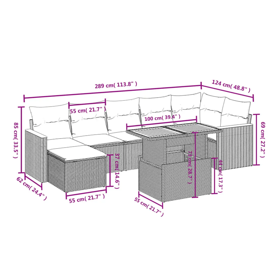 • 7 x coussin de siège avec housse amovible et lavable