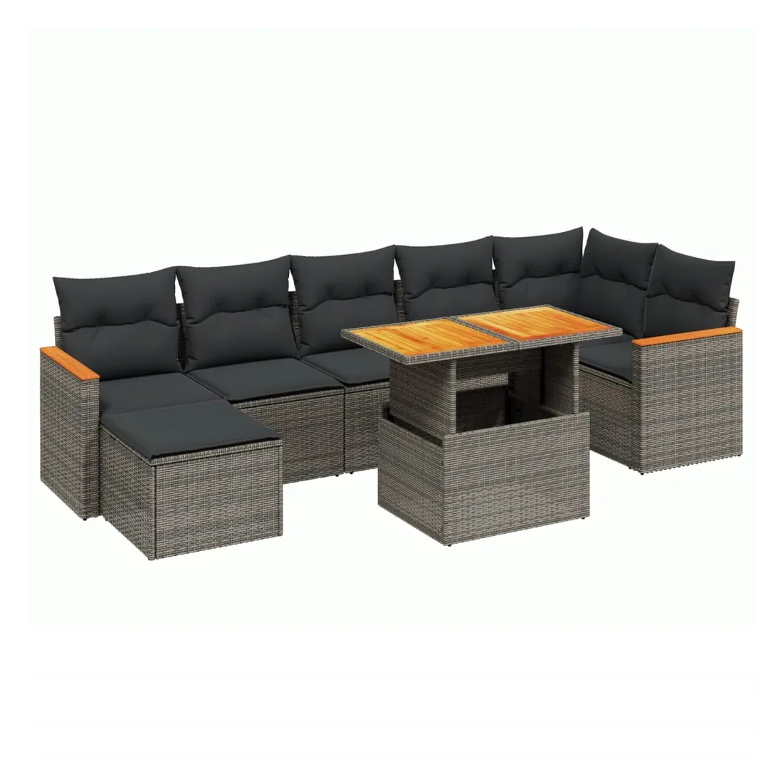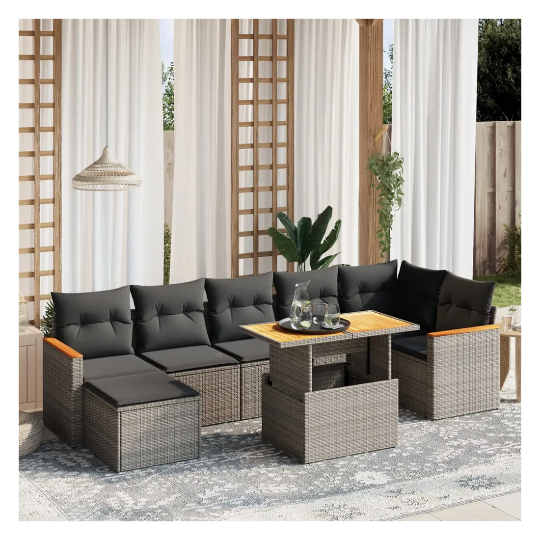 Salon de jardin 8 pcs avec coussins gris résine tressée