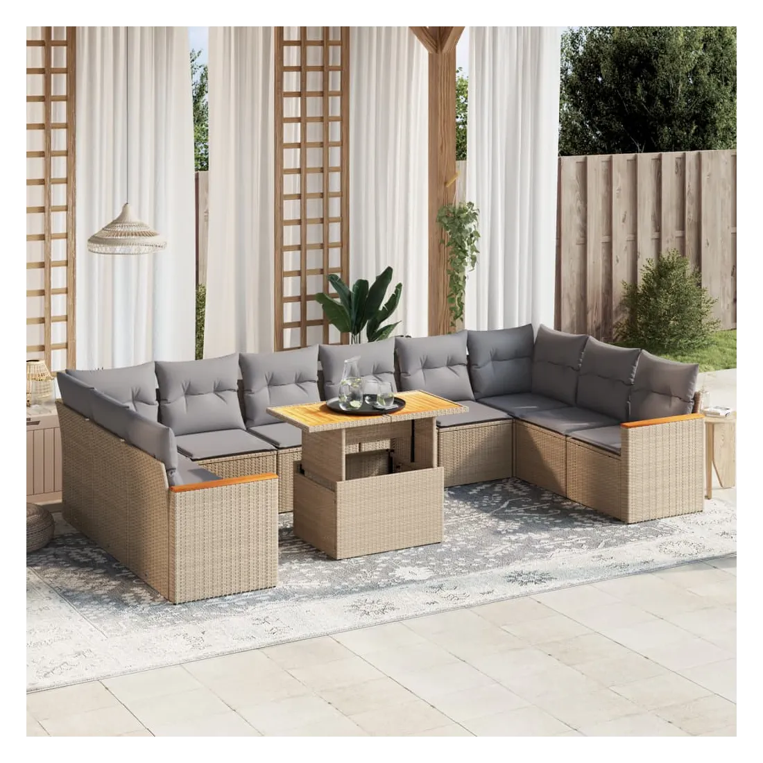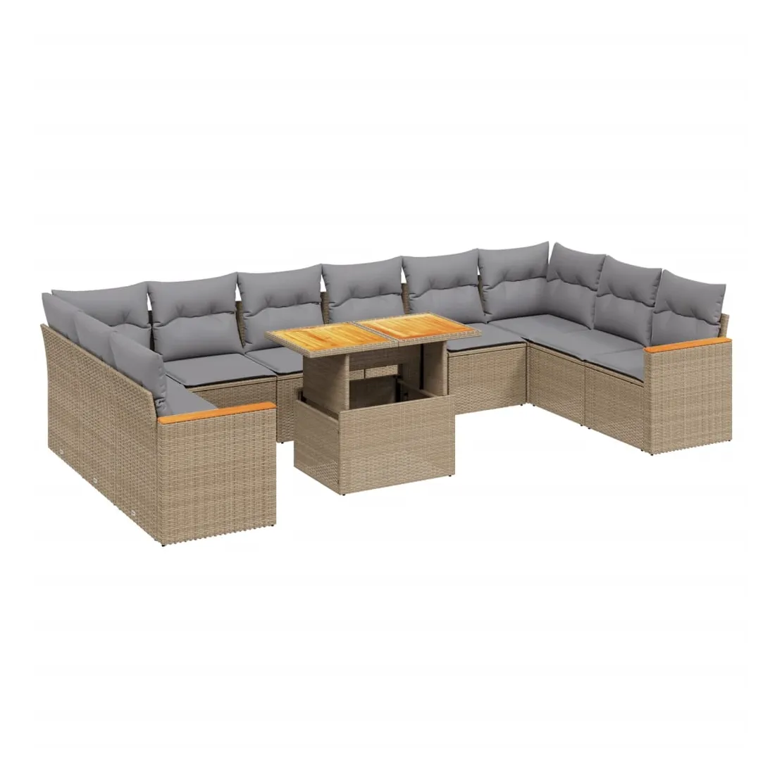 Salon de jardin 11 pcs avec coussins beige résine tressée