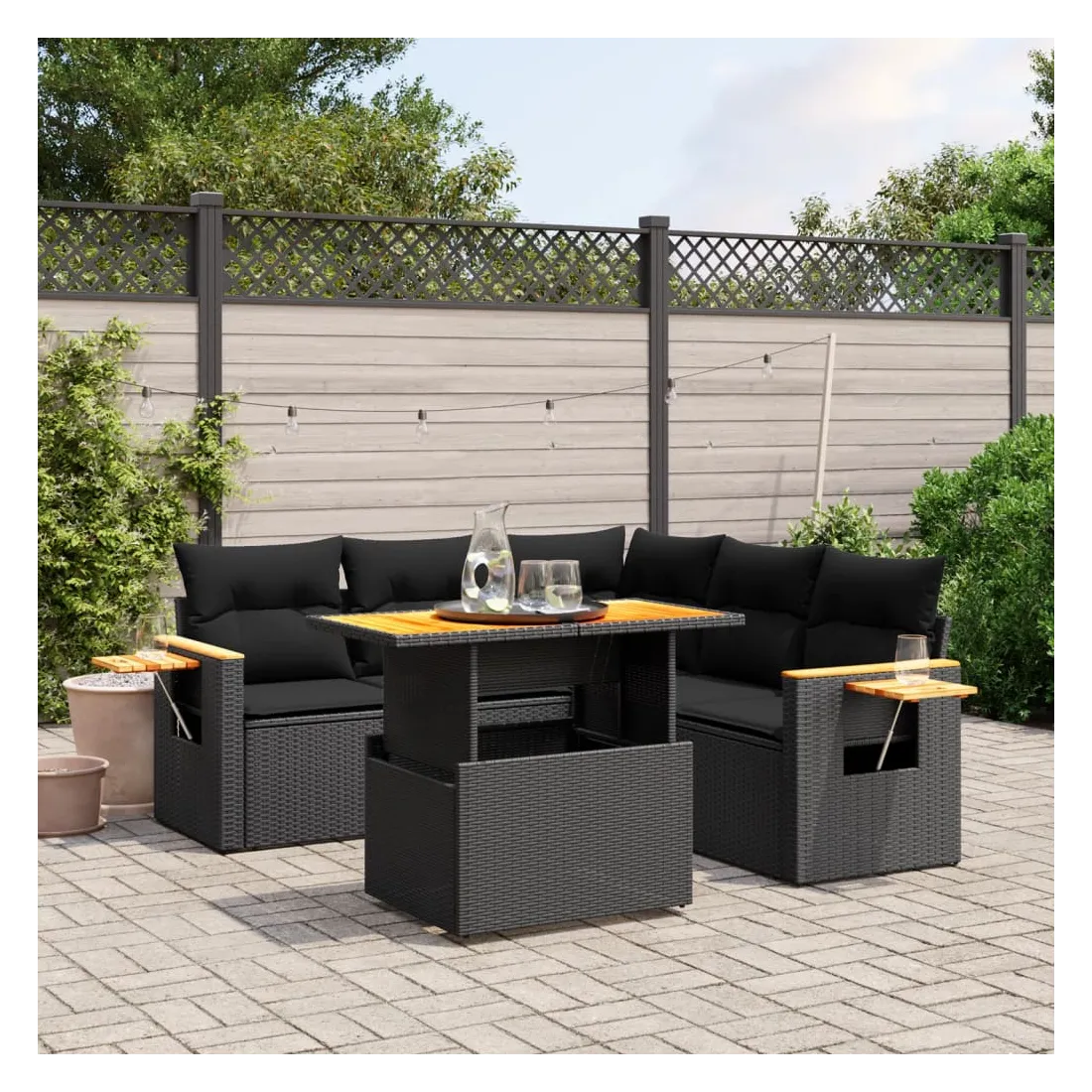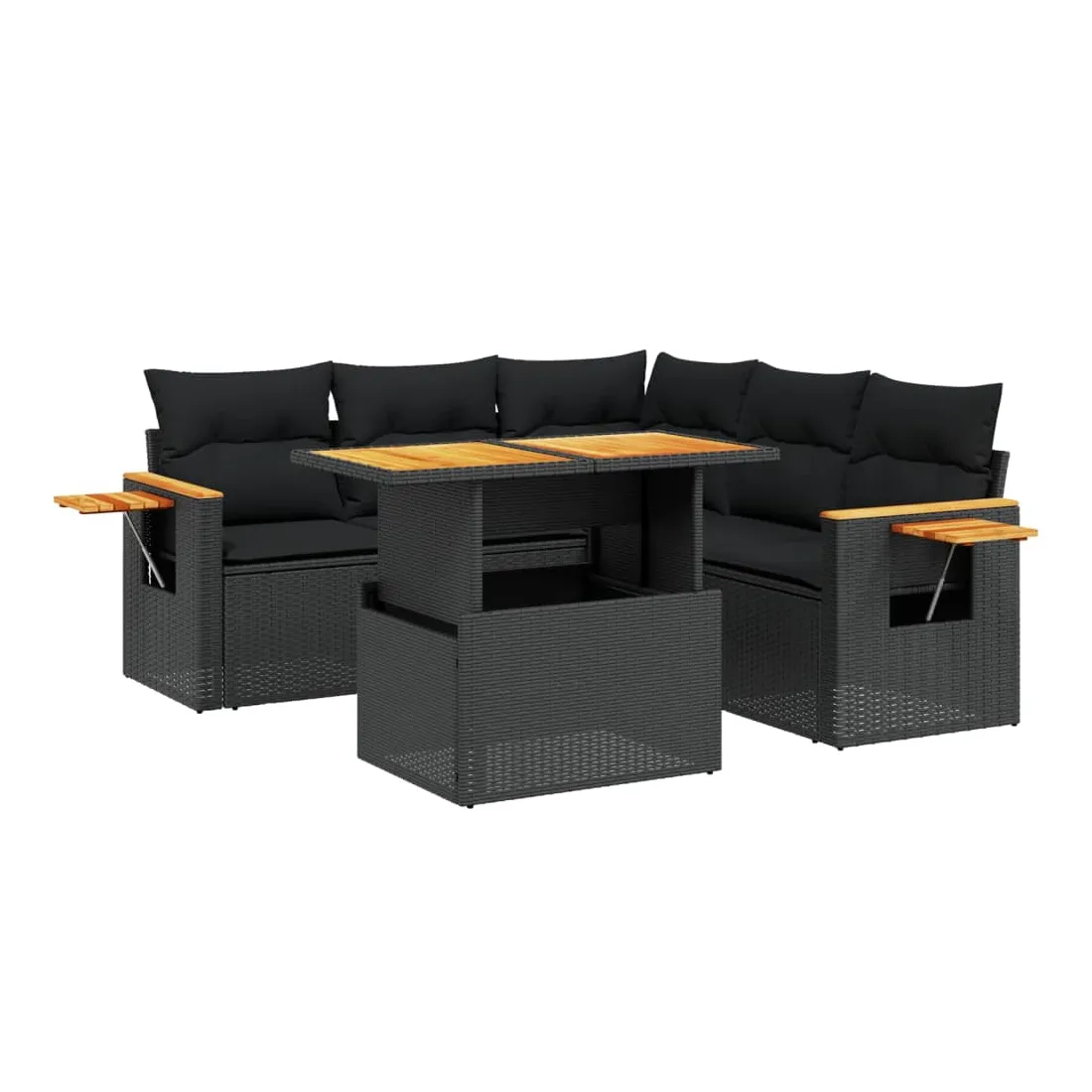 Salon de jardin 6 pcs avec coussins noir résine tressée