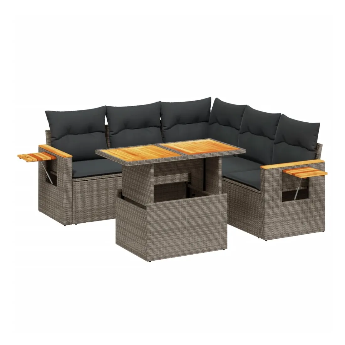 Salon de jardin 6 pcs avec coussins gris résine tressée