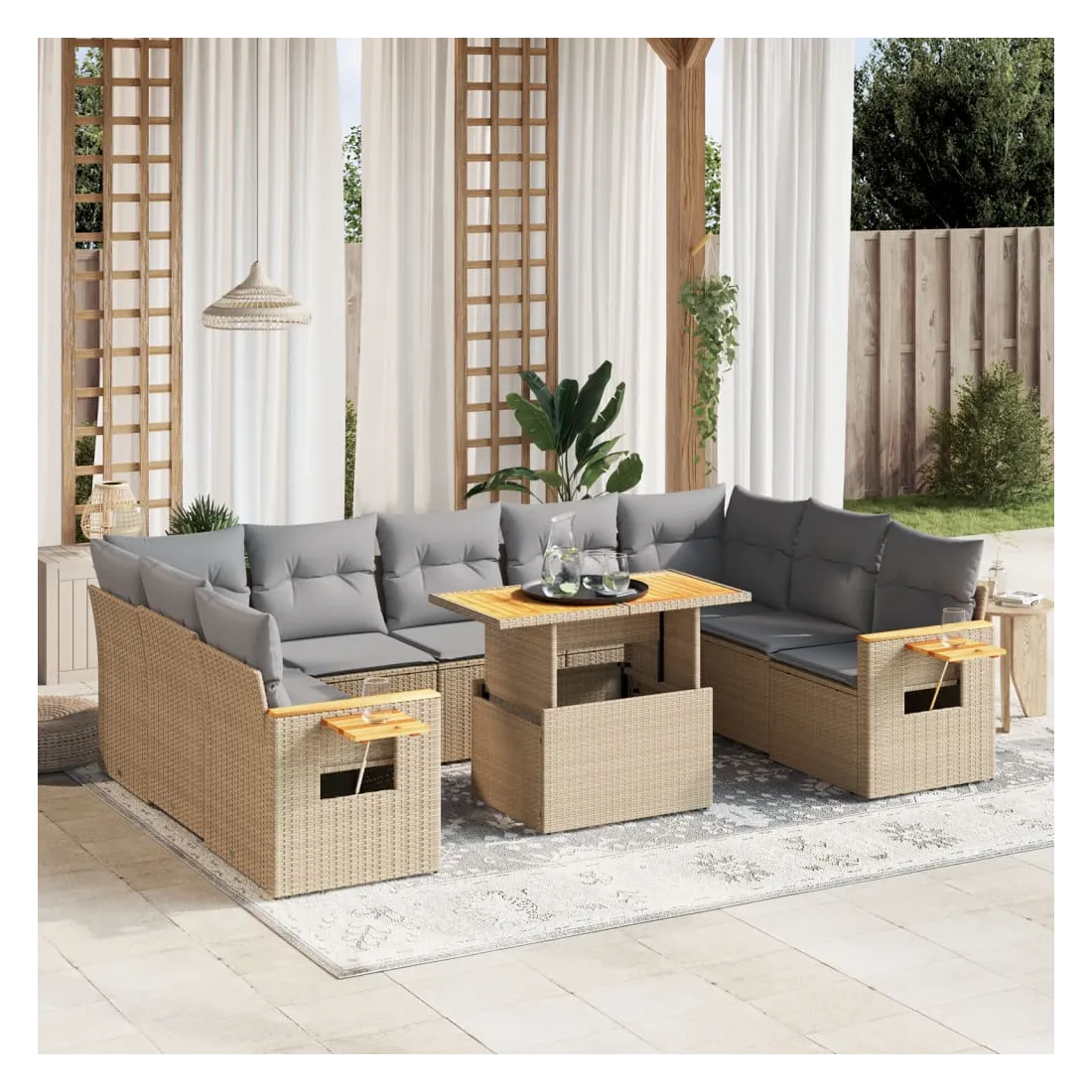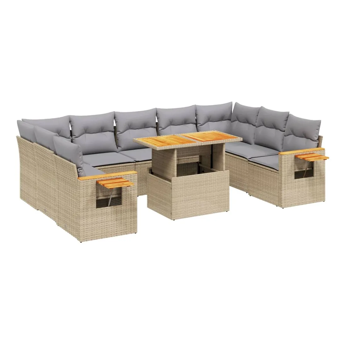 Salon de jardin avec coussins 10 pcs beige résine tressée