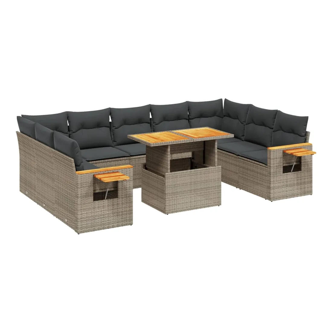 Salon de jardin 11 pcs avec coussins gris résine tressée