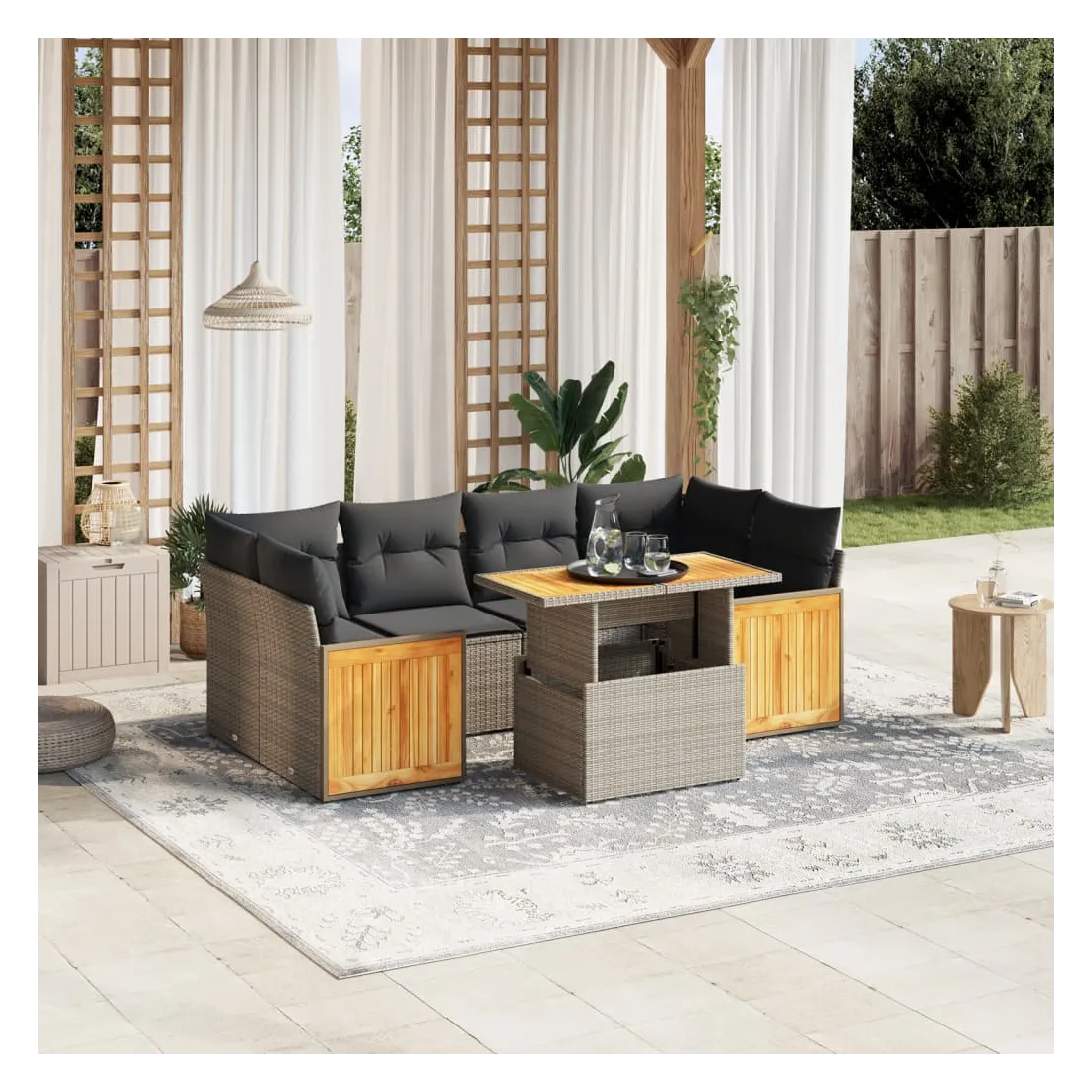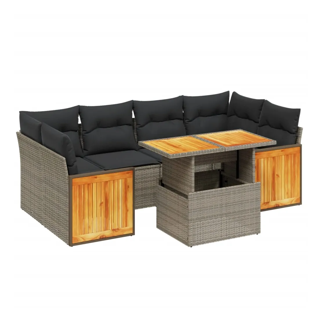 Cet ensemble de canapés de jardin est le complément parfait de votre arrière-cour, terrasse ou patio, offrant un espace confortable et accueillant pour discuter avec la famille et les amis ou simplement se détendre et profiter de l'extérieur. Matériau durable : la résine tressée, également connue sous le nom de poly rotin, est un matériau synthétique solide et nécessitant peu d'entretien qui ressemble au rotin naturel. Il est léger, facile à nettoyer et couramment utilisé pour les meubles d'extérieur en raison de sa durabilité et de ses propriétés de résistance aux intempéries.Dessus de table réglable : le dessus de table peut être soulevé pour rendre la table plus haute, ce qui transforme la table d'extérieur d'une table basse à une table de salle à manger. Elle est parfaite pour recevoir des invités ou prendre des repas à l'extérieur.Housse amovible et lavable : ces coussins de siège sont dotés de housses amovibles pour un lavage et un entretien faciles.Conception modulaire : cet ensemble de meubles d'extérieur a une conception modulaire, ce qui le rend complètement flexible et facile à déplacer, afin que vous puissiez créer un agencement de meubles d'extérieur personnalisé. Bon à savoir :Pour que vos meubles d'extérieur restent beaux, nous vous recommandons de les protéger avec une housse imperméable.