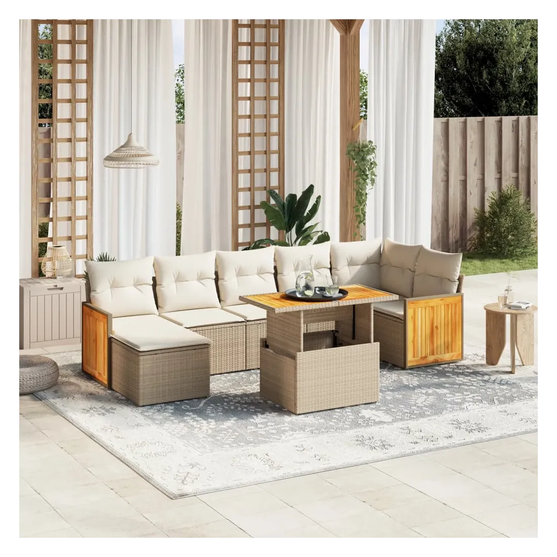 Cet ensemble de canapés de jardin est le complément parfait de votre arrière-cour, terrasse ou patio, offrant un espace confortable et accueillant pour discuter avec la famille et les amis ou simplement se détendre et profiter de l'extérieur. Matériau durable : la résine tressée, également connue sous le nom de poly rotin, est un matériau synthétique solide et nécessitant peu d'entretien qui ressemble au rotin naturel. Il est léger, facile à nettoyer et couramment utilisé pour les meubles d'extérieur en raison de sa durabilité et de ses propriétés de résistance aux intempéries.Dessus de table réglable : le dessus de table peut être soulevé pour rendre la table plus haute, ce qui transforme la table d'extérieur d'une table basse à une table de salle à manger. Elle est parfaite pour recevoir des invités ou prendre des repas à l'extérieur.Housse amovible et lavable : ces coussins de siège sont dotés de housses amovibles pour un lavage et un entretien faciles.Conception modulaire : cet ensemble de meubles d'extérieur a une conception modulaire, ce qui le rend complètement flexible et facile à déplacer, afin que vous puissiez créer un agencement de meubles d'extérieur personnalisé. Bon à savoir :Pour que vos meubles d'extérieur restent beaux, nous vous recommandons de les protéger avec une housse imperméable.