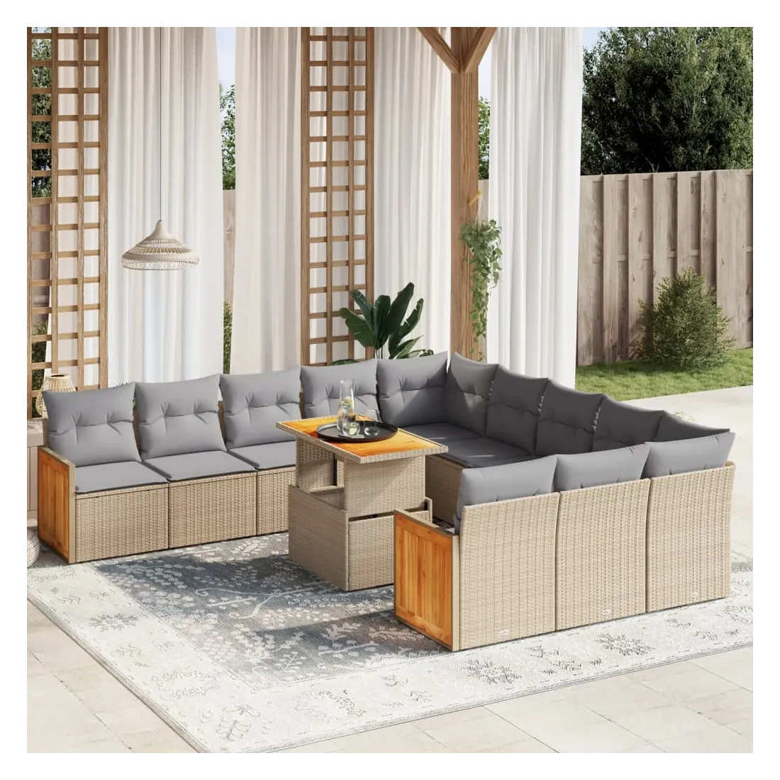 Cet ensemble de canapés de jardin est le complément parfait de votre arrière-cour, terrasse ou patio, offrant un espace confortable et accueillant pour discuter avec la famille et les amis ou simplement se détendre et profiter de l'extérieur. Matériau durable : la résine tressée, également connue sous le nom de poly rotin, est un matériau synthétique solide et nécessitant peu d'entretien qui ressemble au rotin naturel. Il est léger, facile à nettoyer et couramment utilisé pour les meubles d'extérieur en raison de sa durabilité et de ses propriétés de résistance aux intempéries.Dessus de table réglable : le dessus de table peut être soulevé pour rendre la table plus haute, ce qui transforme la table d'extérieur d'une table basse à une table de salle à manger. Elle est parfaite pour recevoir des invités ou prendre des repas à l'extérieur.Housse amovible et lavable : ces coussins de siège sont dotés de housses amovibles pour un lavage et un entretien faciles.Conception modulaire : cet ensemble de meubles d'extérieur a une conception modulaire, ce qui le rend complètement flexible et facile à déplacer, afin que vous puissiez créer un agencement de meubles d'extérieur personnalisé. Bon à savoir :Pour que vos meubles d'extérieur restent beaux, nous vous recommandons de les protéger avec une housse imperméable.