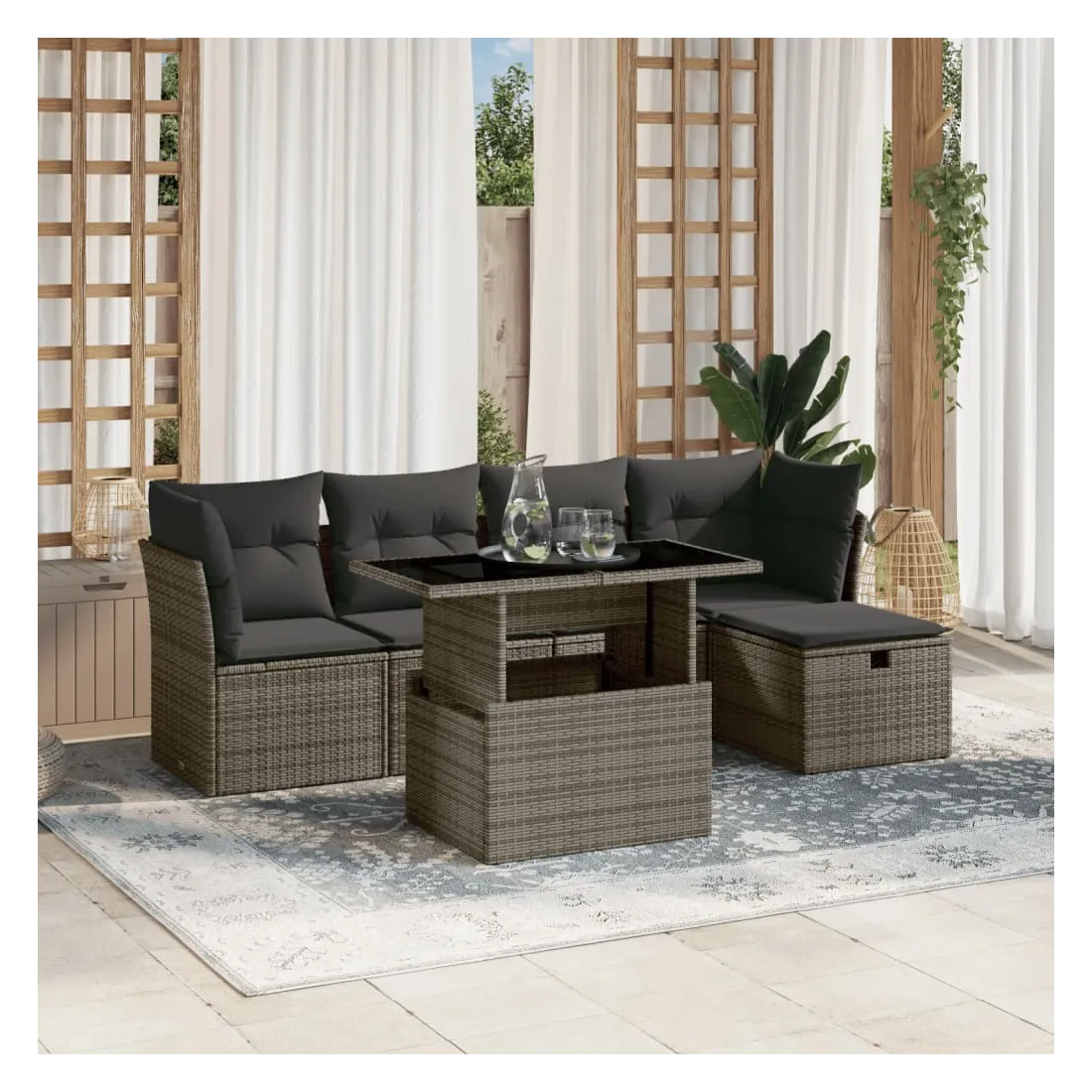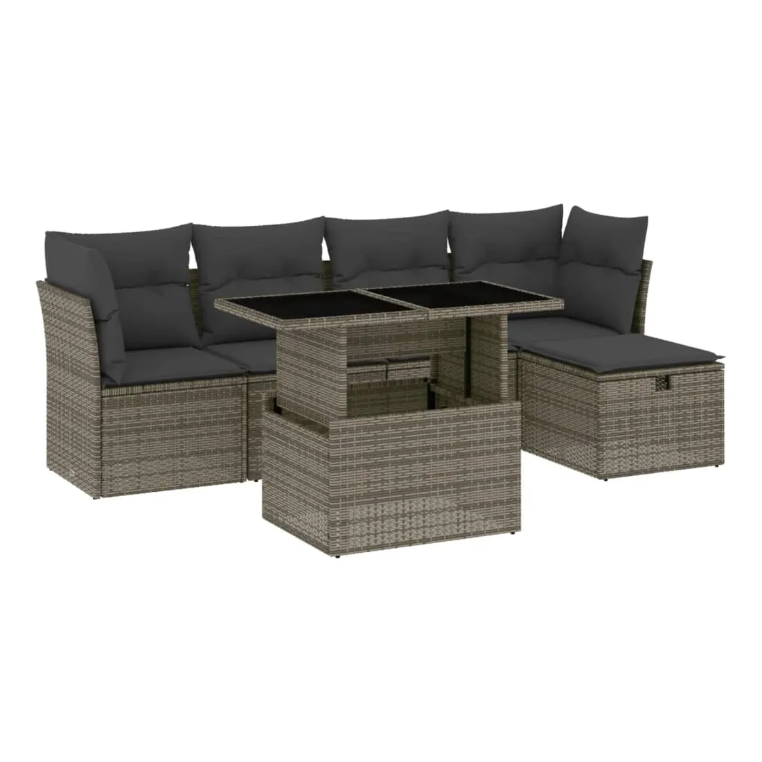 Cet ensemble de canapés de jardin est le complément parfait de votre arrière-cour, terrasse ou patio, offrant un espace confortable et accueillant pour discuter avec la famille et les amis ou simplement se détendre et profiter de l'extérieur. Matériau durable : la résine tressée, également connue sous le nom de poly rotin, est un matériau synthétique solide et nécessitant peu d'entretien qui ressemble au rotin naturel. Il est léger, facile à nettoyer et couramment utilisé pour les meubles d'extérieur en raison de sa durabilité et de ses propriétés de résistance aux intempéries.Dessus de table réglable : le dessus de table peut être soulevé pour rendre la table plus haute, ce qui transforme la table d'extérieur d'une table basse à une table de salle à manger. Elle est parfaite pour recevoir des invités ou prendre des repas à l'extérieur.Housse amovible et lavable : ces coussins de siège sont dotés de housses amovibles pour un lavage et un entretien faciles.Conception modulaire : cet ensemble de meubles d'extérieur a une conception modulaire, ce qui le rend complètement flexible et facile à déplacer, afin que vous puissiez créer un agencement de meubles d'extérieur personnalisé. Bon à savoir :Pour que vos meubles d'extérieur restent beaux, nous vous recommandons de les protéger avec une housse imperméable.