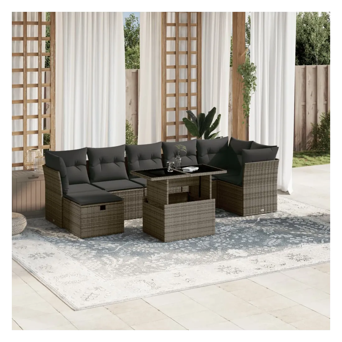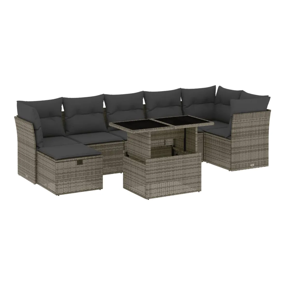 Salon de jardin 8 pcs avec coussins gris résine tressée
