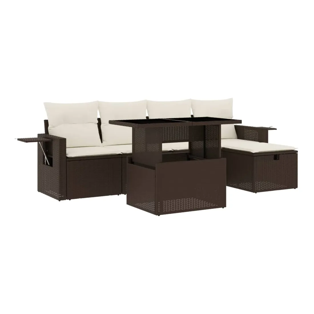 Cet ensemble de canapés de jardin est le complément parfait de votre arrière-cour, terrasse ou patio, offrant un espace confortable et accueillant pour discuter avec la famille et les amis ou simplement se détendre et profiter de l'extérieur. Matériau durable : la résine tressée, également connue sous le nom de poly rotin, est un matériau synthétique solide et nécessitant peu d'entretien qui ressemble au rotin naturel. Il est léger, facile à nettoyer et couramment utilisé pour les meubles d'extérieur en raison de sa durabilité et de ses propriétés de résistance aux intempéries.Dessus de table réglable : le dessus de table peut être soulevé pour rendre la table plus haute, ce qui transforme la table d'extérieur d'une table basse à une table de salle à manger. Elle est parfaite pour recevoir des invités ou prendre des repas à l'extérieur.Housse amovible et lavable : ces coussins de siège sont dotés de housses amovibles pour un lavage et un entretien faciles.Conception modulaire : cet ensemble de meubles d'extérieur a une conception modulaire, ce qui le rend complètement flexible et facile à déplacer, afin que vous puissiez créer un agencement de meubles d'extérieur personnalisé. Bon à savoir :Pour que vos meubles d'extérieur restent beaux, nous vous recommandons de les protéger avec une housse imperméable.