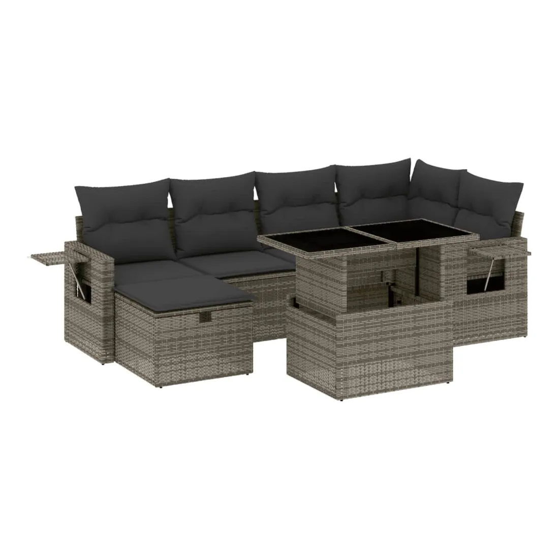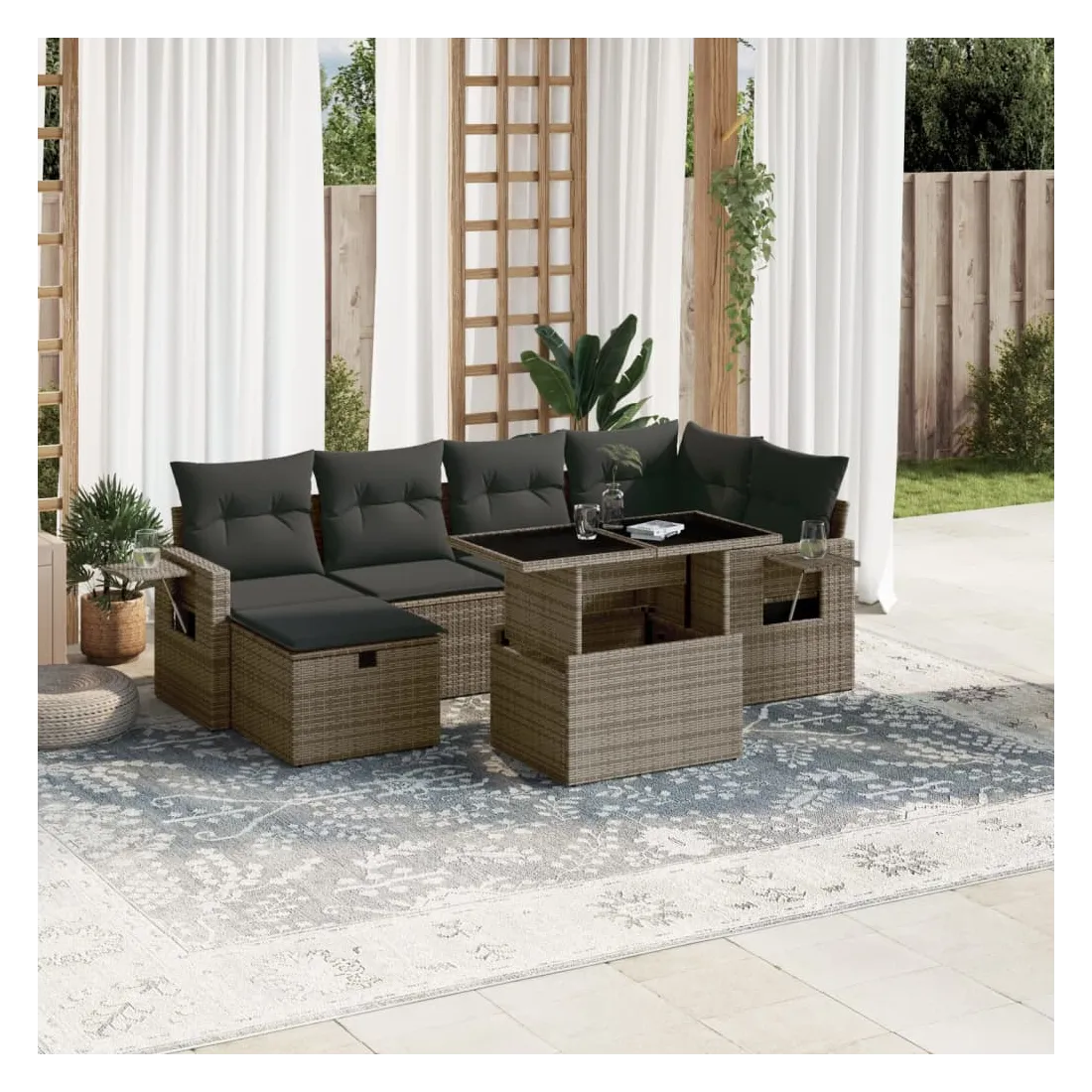Cet ensemble de canapés de jardin est le complément parfait de votre arrière-cour, terrasse ou patio, offrant un espace confortable et accueillant pour discuter avec la famille et les amis ou simplement se détendre et profiter de l'extérieur. Matériau durable : la résine tressée, également connue sous le nom de poly rotin, est un matériau synthétique solide et nécessitant peu d'entretien qui ressemble au rotin naturel. Il est léger, facile à nettoyer et couramment utilisé pour les meubles d'extérieur en raison de sa durabilité et de ses propriétés de résistance aux intempéries.Dessus de table réglable : le dessus de table peut être soulevé pour rendre la table plus haute, ce qui transforme la table d'extérieur d'une table basse à une table de salle à manger. Elle est parfaite pour recevoir des invités ou prendre des repas à l'extérieur.Housse amovible et lavable : ces coussins de siège sont dotés de housses amovibles pour un lavage et un entretien faciles.Conception modulaire : cet ensemble de meubles d'extérieur a une conception modulaire, ce qui le rend complètement flexible et facile à déplacer, afin que vous puissiez créer un agencement de meubles d'extérieur personnalisé. Bon à savoir :Pour que vos meubles d'extérieur restent beaux, nous vous recommandons de les protéger avec une housse imperméable.