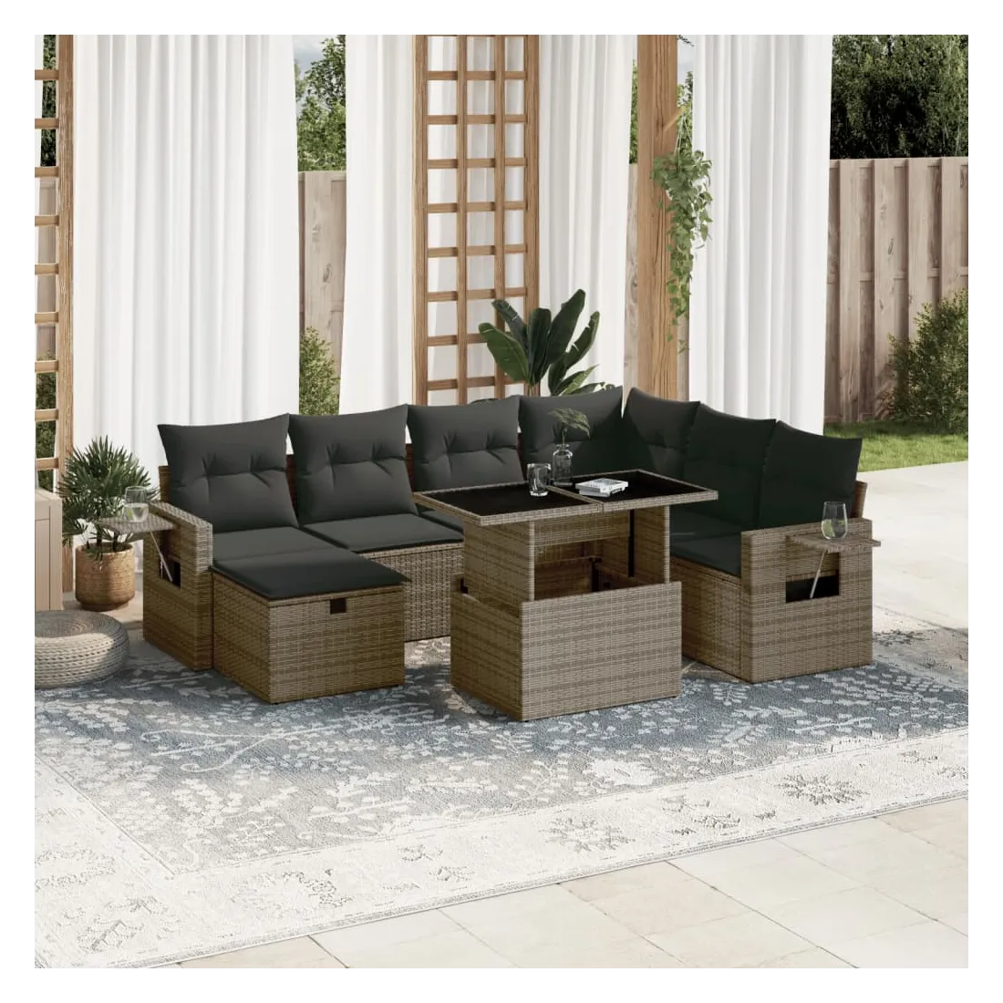 Cet ensemble de canapés de jardin est le complément parfait de votre arrière-cour, terrasse ou patio, offrant un espace confortable et accueillant pour discuter avec la famille et les amis ou simplement se détendre et profiter de l'extérieur. Matériau durable : la résine tressée, également connue sous le nom de poly rotin, est un matériau synthétique solide et nécessitant peu d'entretien qui ressemble au rotin naturel. Il est léger, facile à nettoyer et couramment utilisé pour les meubles d'extérieur en raison de sa durabilité et de ses propriétés de résistance aux intempéries.Dessus de table réglable : le dessus de table peut être soulevé pour rendre la table plus haute, ce qui transforme la table d'extérieur d'une table basse à une table de salle à manger. Elle est parfaite pour recevoir des invités ou prendre des repas à l'extérieur.Housse amovible et lavable : ces coussins de siège sont dotés de housses amovibles pour un lavage et un entretien faciles.Conception modulaire : cet ensemble de meubles d'extérieur a une conception modulaire, ce qui le rend complètement flexible et facile à déplacer, afin que vous puissiez créer un agencement de meubles d'extérieur personnalisé. Bon à savoir :Pour que vos meubles d'extérieur restent beaux, nous vous recommandons de les protéger avec une housse imperméable.