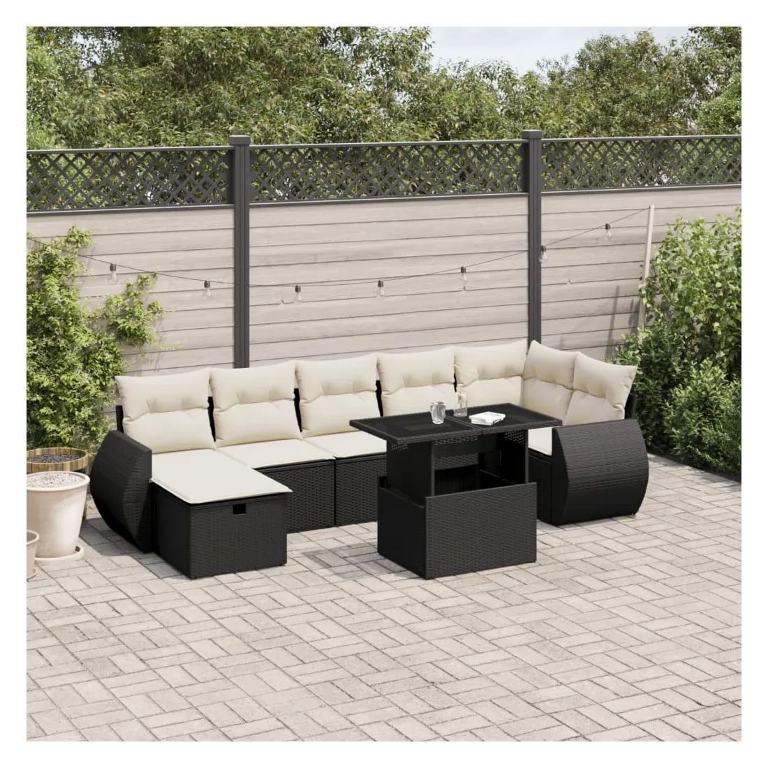 Cet ensemble de canapés de jardin est le complément parfait de votre arrière-cour, terrasse ou patio, offrant un espace confortable et accueillant pour discuter avec la famille et les amis ou simplement se détendre et profiter de l'extérieur. Matériau durable : la résine tressée, également connue sous le nom de poly rotin, est un matériau synthétique solide et nécessitant peu d'entretien qui ressemble au rotin naturel. Il est léger, facile à nettoyer et couramment utilisé pour les meubles d'extérieur en raison de sa durabilité et de ses propriétés de résistance aux intempéries.Dessus de table réglable : le dessus de table peut être soulevé pour rendre la table plus haute, ce qui transforme la table d'extérieur d'une table basse à une table de salle à manger. Elle est parfaite pour recevoir des invités ou prendre des repas à l'extérieur.Dessus en verre : le dessus de la table d'extérieur est fabriqué en verre trempé solide et durable, ce qui le rend facile à nettoyer avec un chiffon humide et ajoute une touche d'élégance à votre espace extérieur.Housse amovible et lavable : ces coussins de siège sont dotés de housses amovibles pour un lavage et un entretien faciles.Conception modulaire : cet ensemble de meubles d'extérieur a une conception modulaire, ce qui le rend complètement flexible et facile à déplacer, afin que vous puissiez créer un agencement de meubles d'extérieur personnalisé. Bon à savoir :Pour que vos meubles d'extérieur restent beaux, nous vous recommandons de les protéger avec une housse imperméable.