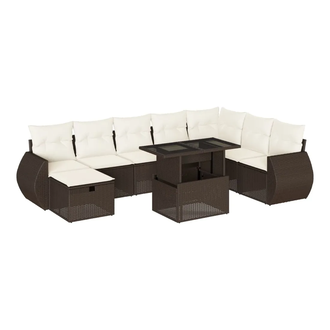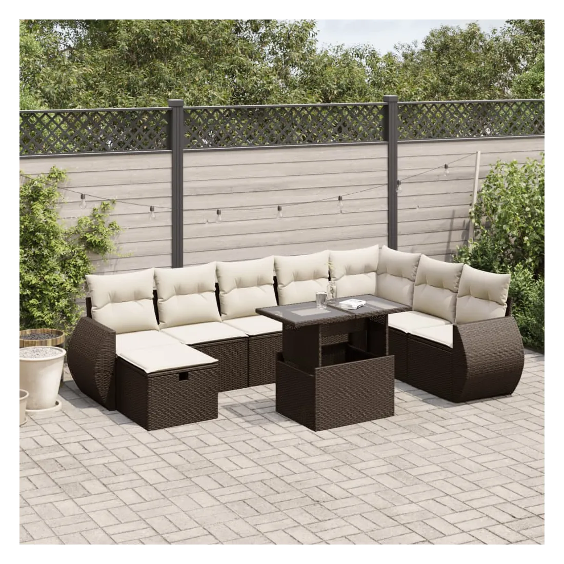 Cet ensemble de canapés de jardin est le complément parfait de votre arrière-cour, terrasse ou patio, offrant un espace confortable et accueillant pour discuter avec la famille et les amis ou simplement se détendre et profiter de l'extérieur. Matériau durable : la résine tressée, également connue sous le nom de poly rotin, est un matériau synthétique solide et nécessitant peu d'entretien qui ressemble au rotin naturel. Elle est légère, facile à nettoyer et couramment utilisée pour les meubles d'extérieur en raison de sa durabilité et de ses propriétés de résistance aux intempéries.Dessus de table réglable : le dessus de table peut être soulevé pour rendre la table plus haute, ce qui transforme la table d'extérieur d'une table basse à une table de salle à manger. Elle est parfaite pour recevoir des invités ou prendre des repas à l'extérieur.Dessus en verre : le dessus de la table d'extérieur est fabriqué en verre trempé solide et durable, ce qui le rend facile à nettoyer avec un chiffon humide et ajoute une touche d'élégance à votre espace extérieur.Housse amovible et lavable : ces coussins de siège sont dotés de housses amovibles pour un lavage et un entretien faciles.Conception modulaire : cet ensemble de meubles d'extérieur a une conception modulaire, ce qui le rend complètement flexible et facile à déplacer, afin que vous puissiez créer un agencement de meubles d'extérieur personnalisé. Bon à savoir :Pour que vos meubles d'extérieur restent beaux, nous vous recommandons de les protéger avec une housse imperméable.