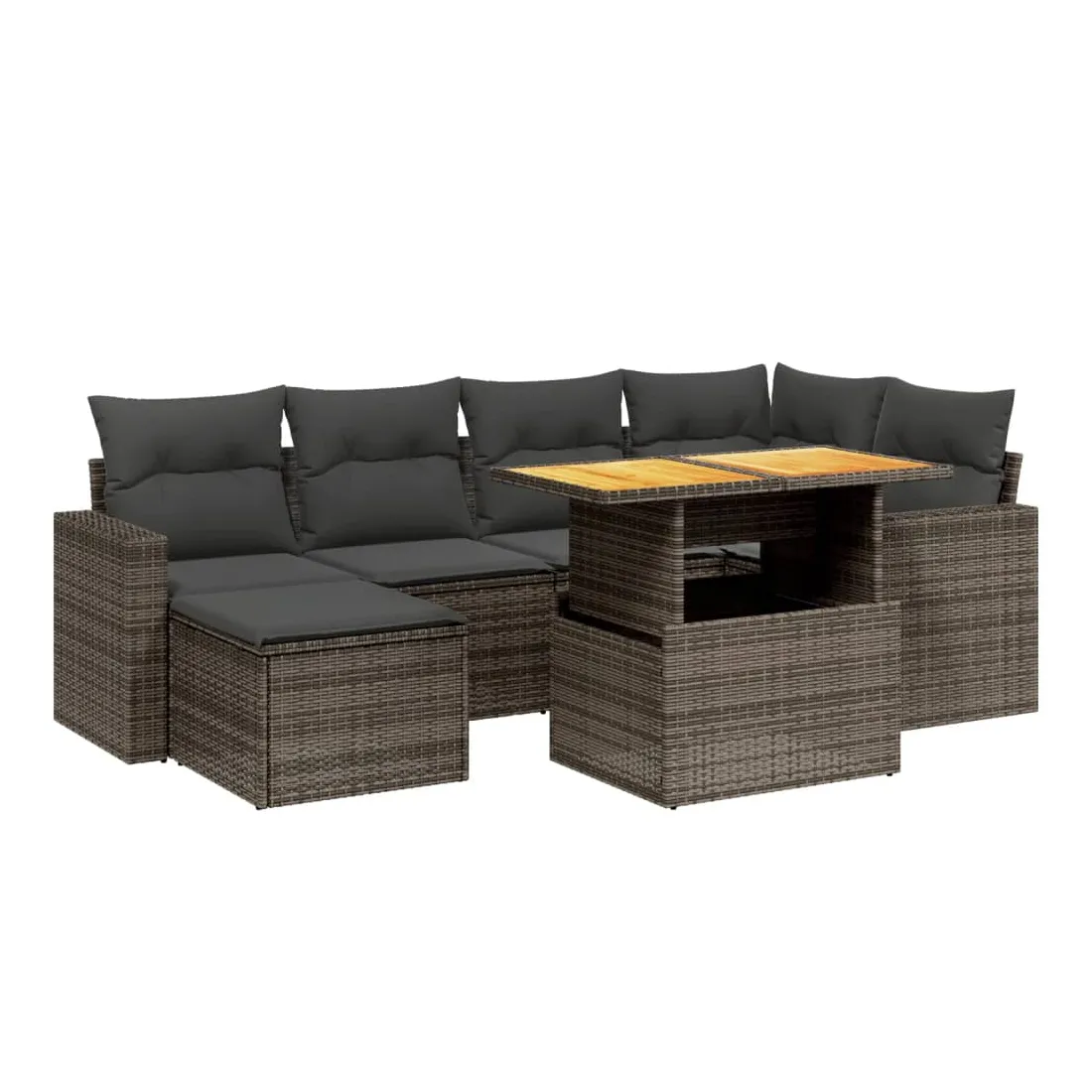 Cet ensemble de canapés de jardin est le complément parfait de votre arrière-cour, terrasse ou patio, offrant un espace confortable et accueillant pour discuter avec la famille et les amis ou simplement se détendre et profiter de l'extérieur. Matériau durable : la résine tressée, également connue sous le nom de poly rotin, est un matériau synthétique solide et nécessitant peu d'entretien qui ressemble au rotin naturel. Il est léger, facile à nettoyer et couramment utilisé pour les meubles d'extérieur en raison de sa durabilité et de ses propriétés de résistance aux intempéries.Dessus de table réglable : le dessus de table peut être soulevé pour rendre la table plus haute, ce qui transforme la table d'extérieur d'une table basse à une table de salle à manger. Elle est parfaite pour recevoir des invités ou prendre des repas à l'extérieur.Housse amovible et lavable : ces coussins de siège sont dotés de housses amovibles pour un lavage et un entretien faciles.Conception modulaire : cet ensemble de meubles d'extérieur a une conception modulaire, ce qui le rend complètement flexible et facile à déplacer, afin que vous puissiez créer un agencement de meubles d'extérieur personnalisé. Bon à savoir :Pour que vos meubles d'extérieur restent beaux, nous vous recommandons de les protéger avec une housse imperméable.