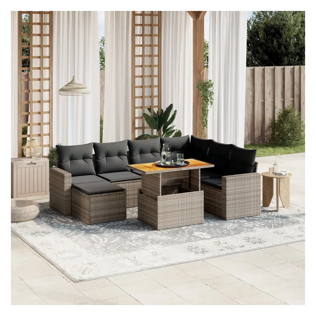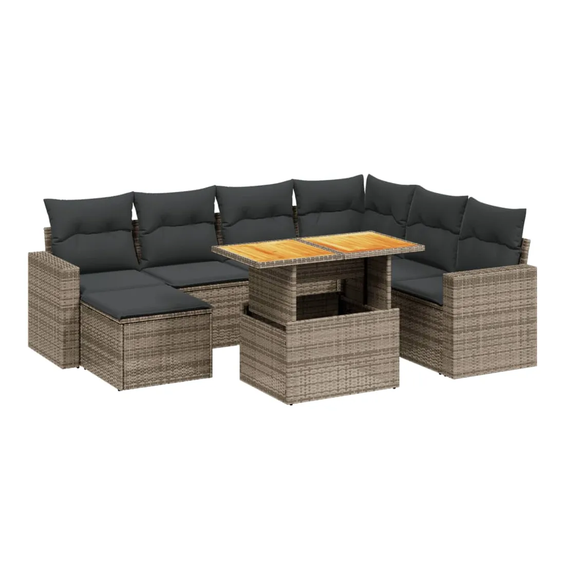 Salon de jardin 8 pcs avec coussins gris résine tressée