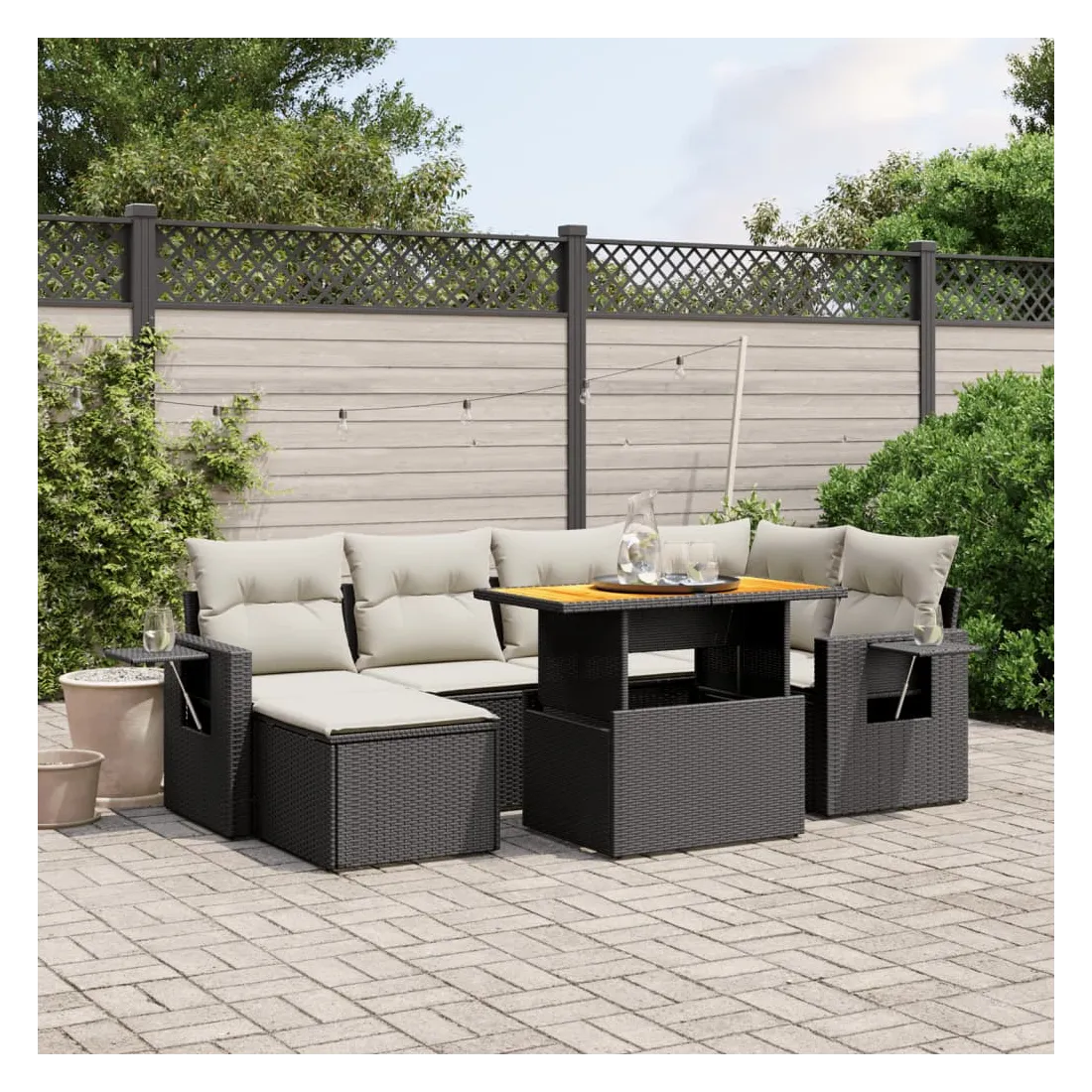 Cet ensemble de canapés de jardin est le complément parfait de votre arrière-cour, terrasse ou patio, offrant un espace confortable et accueillant pour discuter avec la famille et les amis ou simplement se détendre et profiter de l'extérieur. Matériau durable : la résine tressée, également connue sous le nom de poly rotin, est un matériau synthétique solide et nécessitant peu d'entretien qui ressemble au rotin naturel. Il est léger, facile à nettoyer et couramment utilisé pour les meubles d'extérieur en raison de sa durabilité et de ses propriétés de résistance aux intempéries.Dessus de table réglable : le dessus de table peut être soulevé pour rendre la table plus haute, ce qui transforme la table d'extérieur d'une table basse à une table de salle à manger. Elle est parfaite pour recevoir des invités ou prendre des repas à l'extérieur.Table d'appoint pratique : ce mobilier d'extérieur comprend une table d'appoint pliable avec un ressort à gaz sur les accoudoirs, offrant un endroit pratique pour garder vos essentiels à portée de main.Housse amovible et lavable : ces coussins de siège sont dotés de housses amovibles pour un lavage et un entretien faciles.Conception modulaire : cet ensemble de meubles d'extérieur a une conception modulaire, ce qui le rend complètement flexible et facile à déplacer, afin que vous puissiez créer un agencement de meubles d'extérieur personnalisé. Bon à savoir :Pour que vos meubles d'extérieur restent beaux, nous vous recommandons de les protéger avec une housse imperméable.